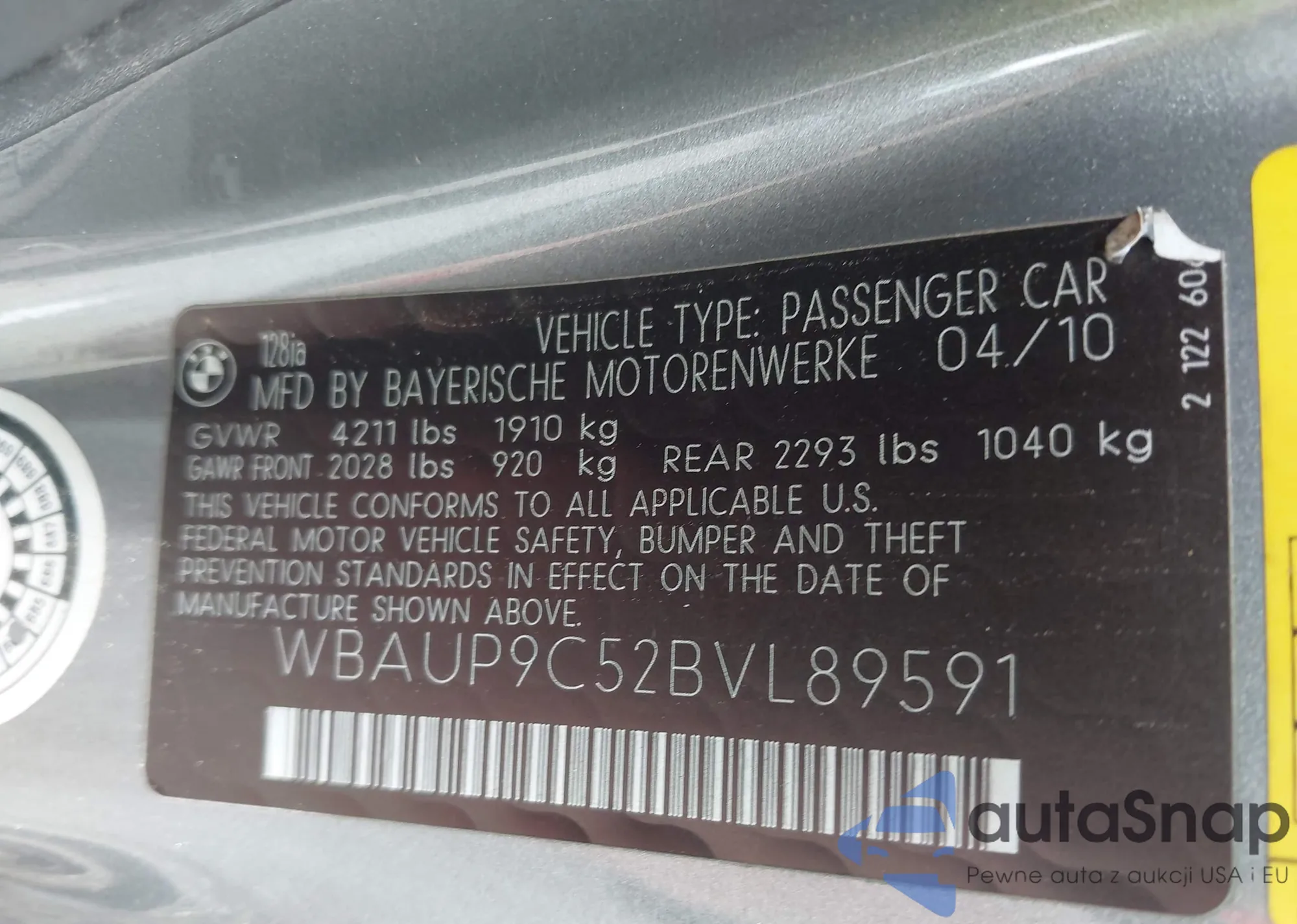 • VIN WBAUP9C52BVL89591