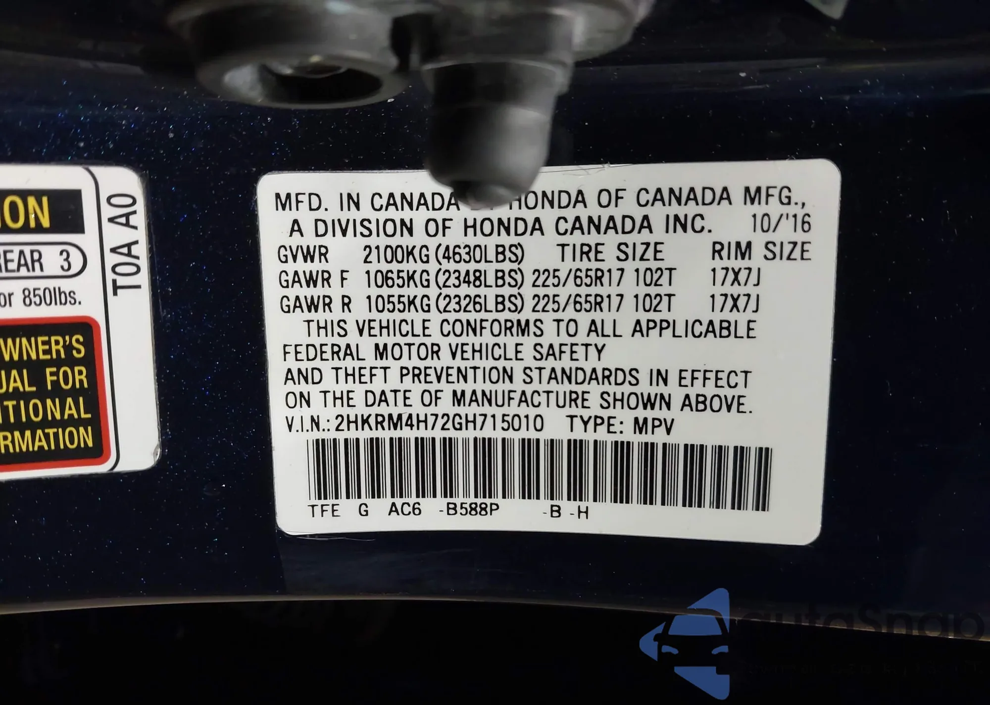 • VIN 2HKRM4H72GH715010