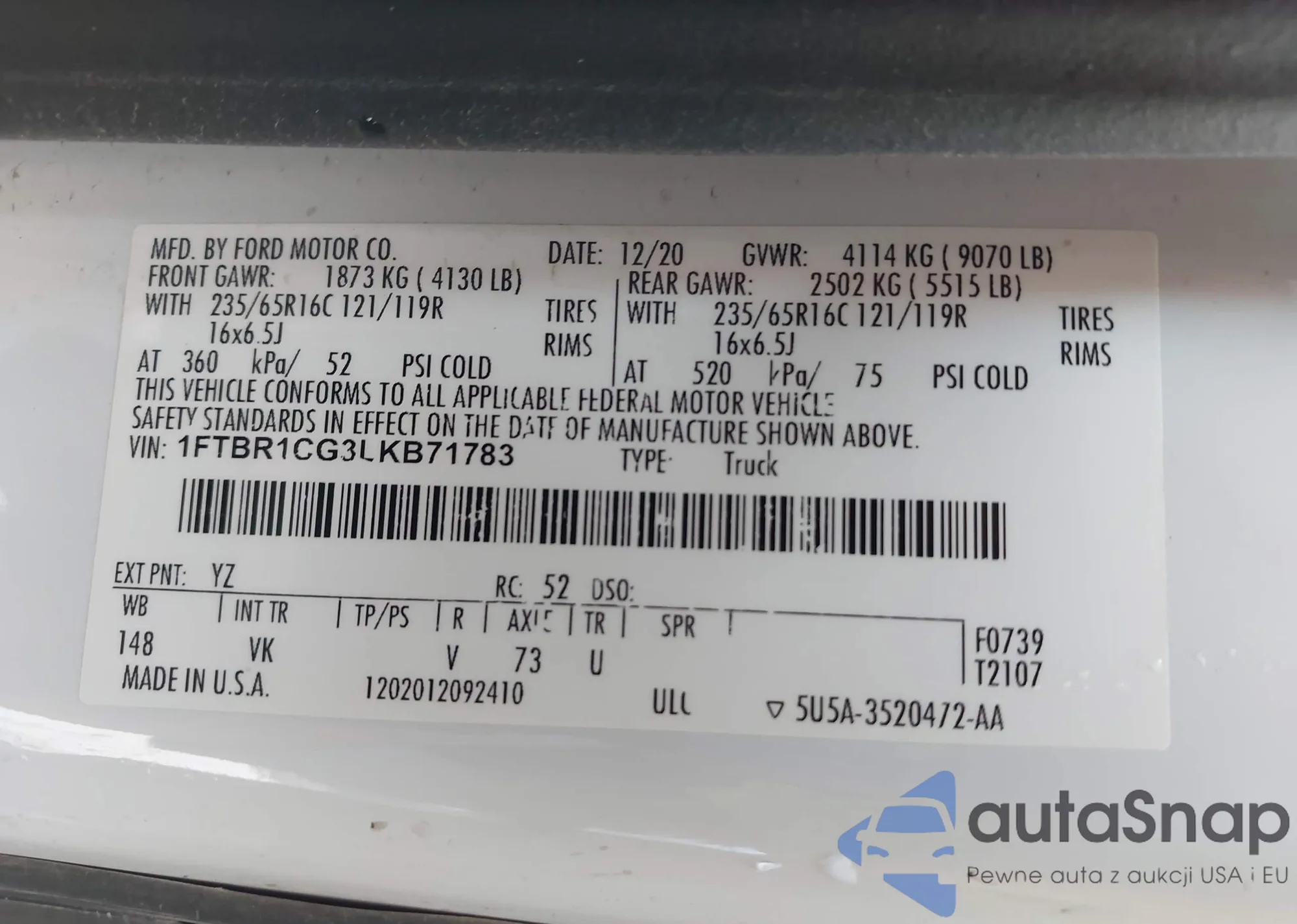 LOT: 42036911 VIN: WA1BNAFY4J2005764