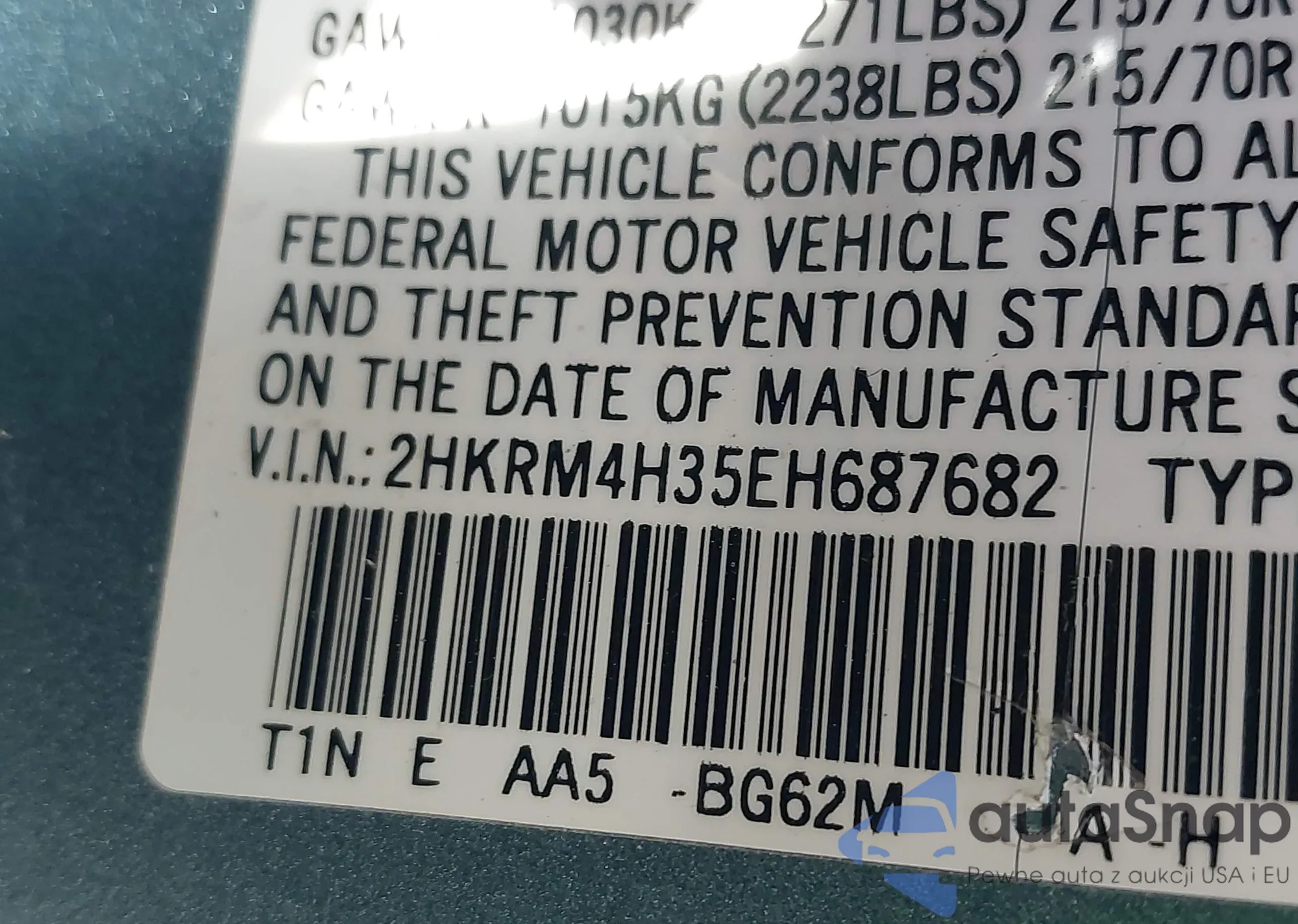 • VIN 2HKRM4H35EH687682