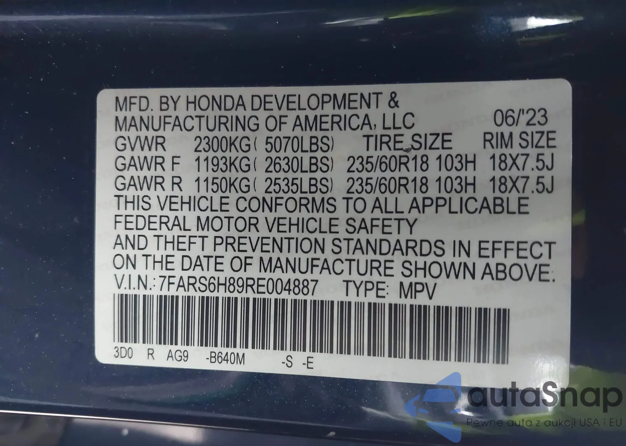 • VIN 7FARS6H89RE004887
