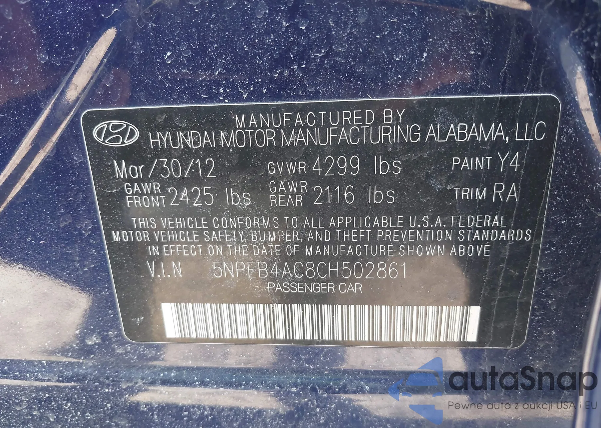 • VIN 5NPEB4AC8CH502861