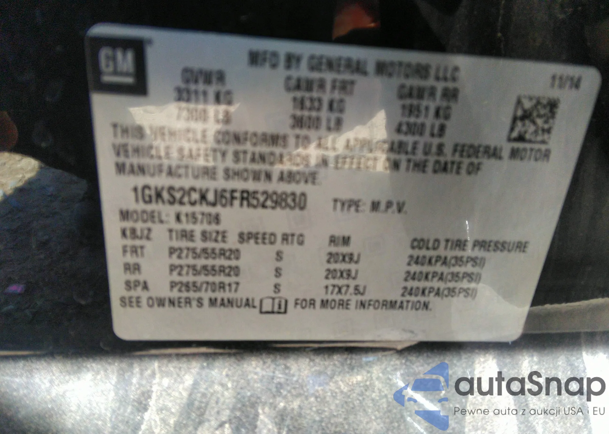 LOT: 41798139 VIN: 1GKS2CKJ6FR529830