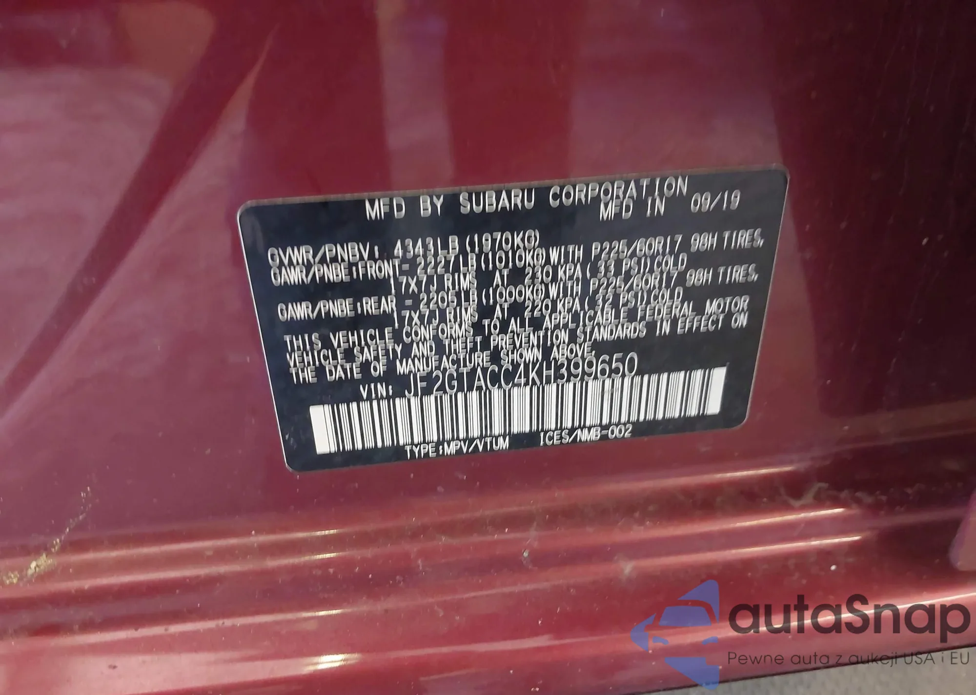 LOT: 41839947 VIN: 2T3W1RFV8PC236871