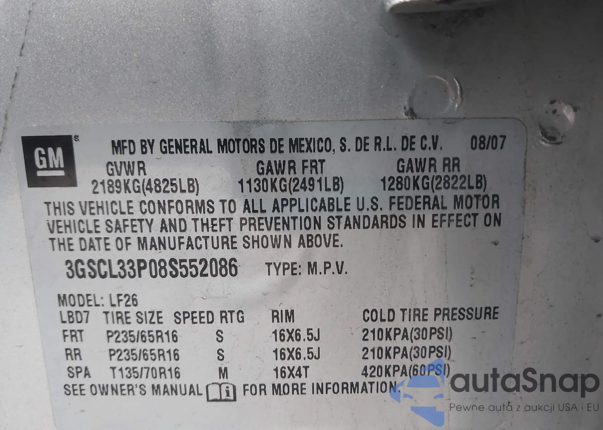 • VIN 1G6DA5E51C0152943