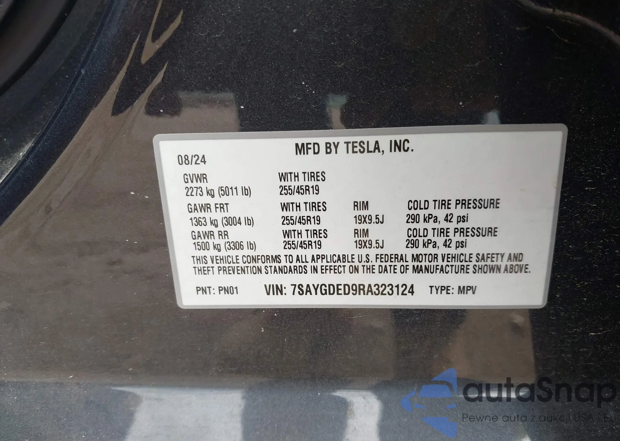 • VIN 7SAYGDED9RA323124