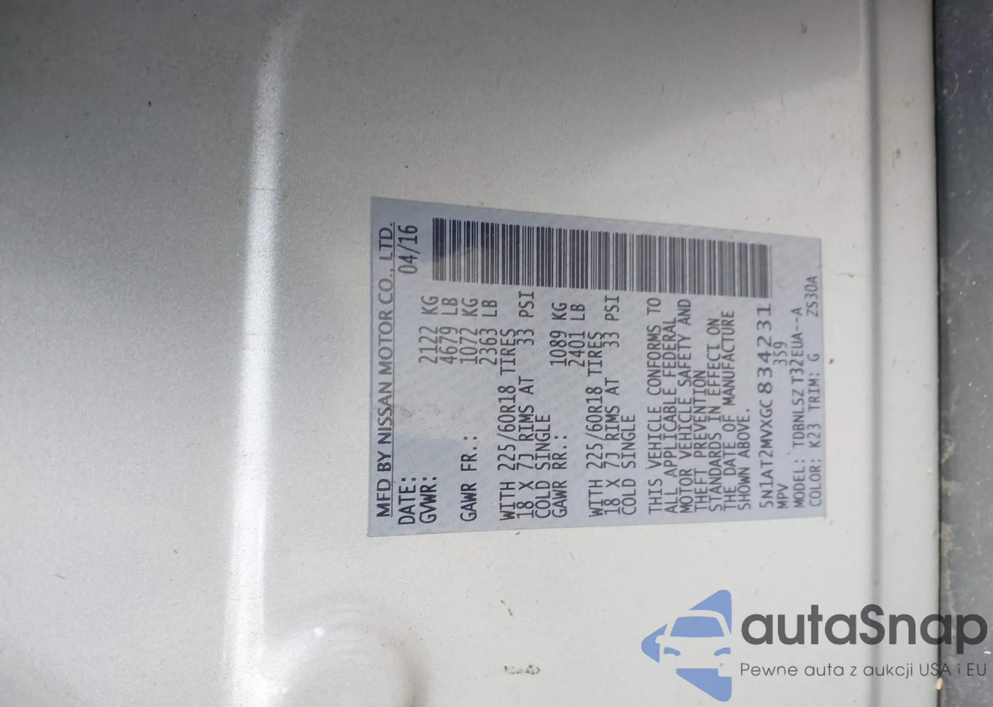 LOT: 42178963 VIN: 5N1AT2MVXGC834231