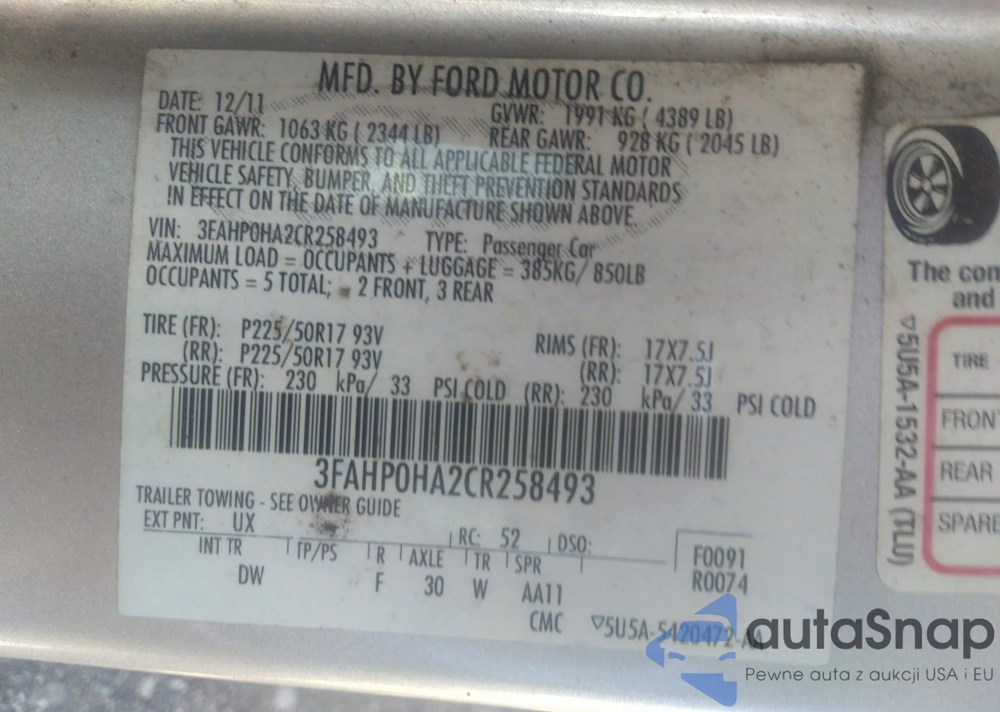 • VIN KNAFX4A86G5490746