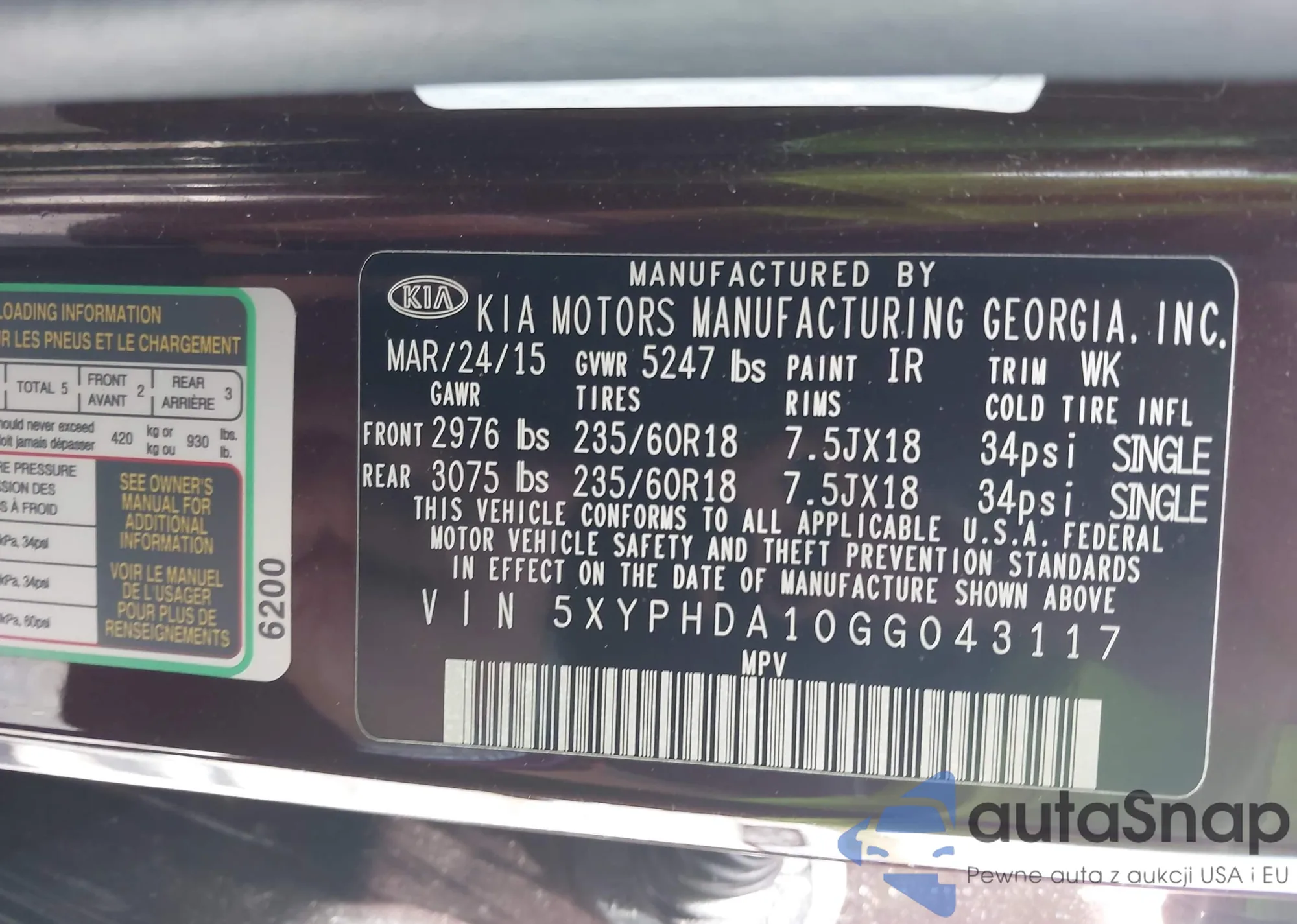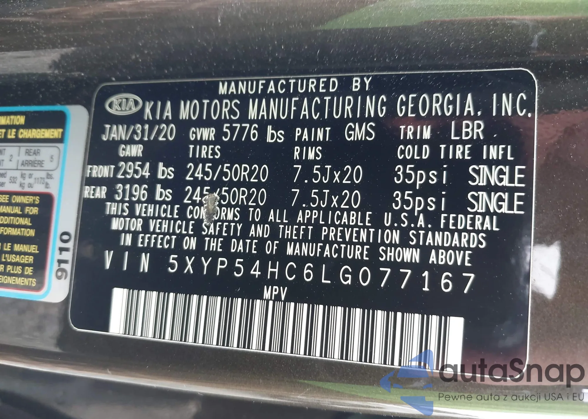 • VIN 5XYP54HC6LG077167