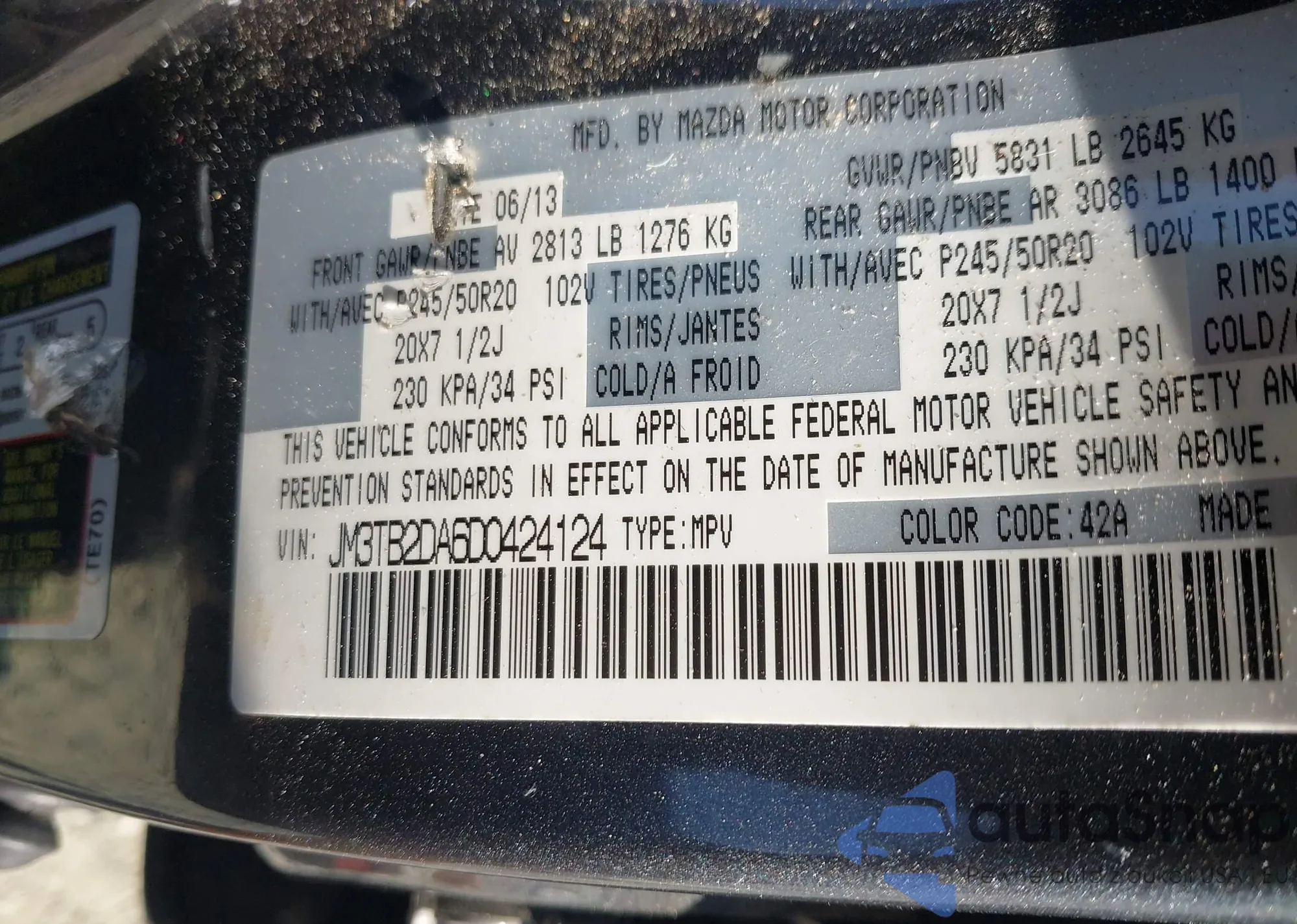 LOT: 42032588 VIN: JM3TB2DA6D0424124