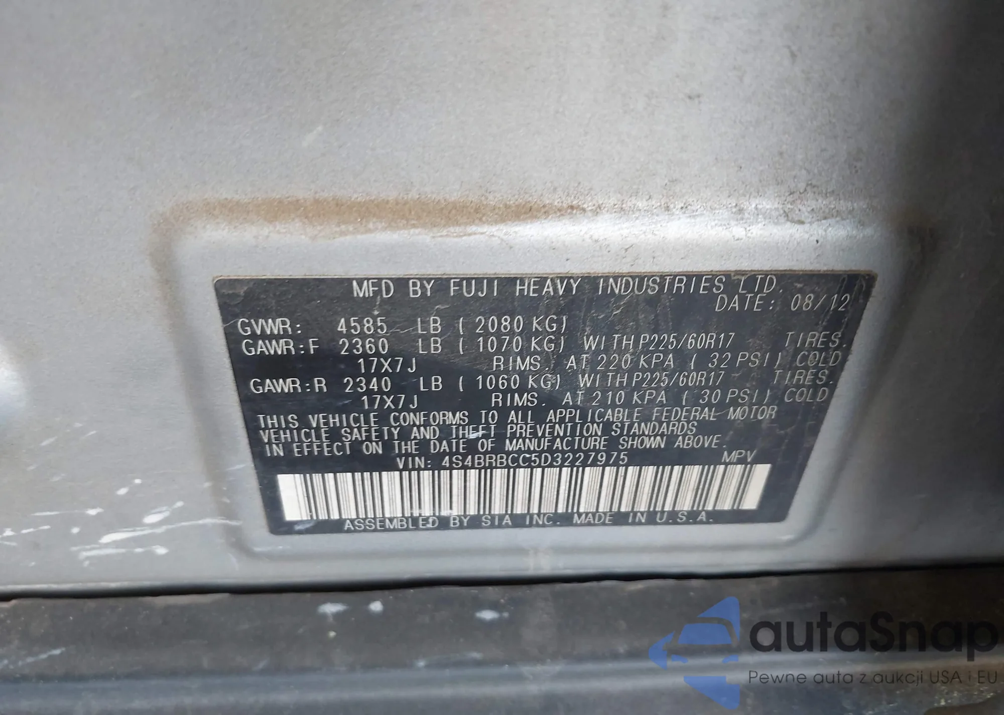 LOT: 42143836 VIN: 58ABZ1B12KU038078