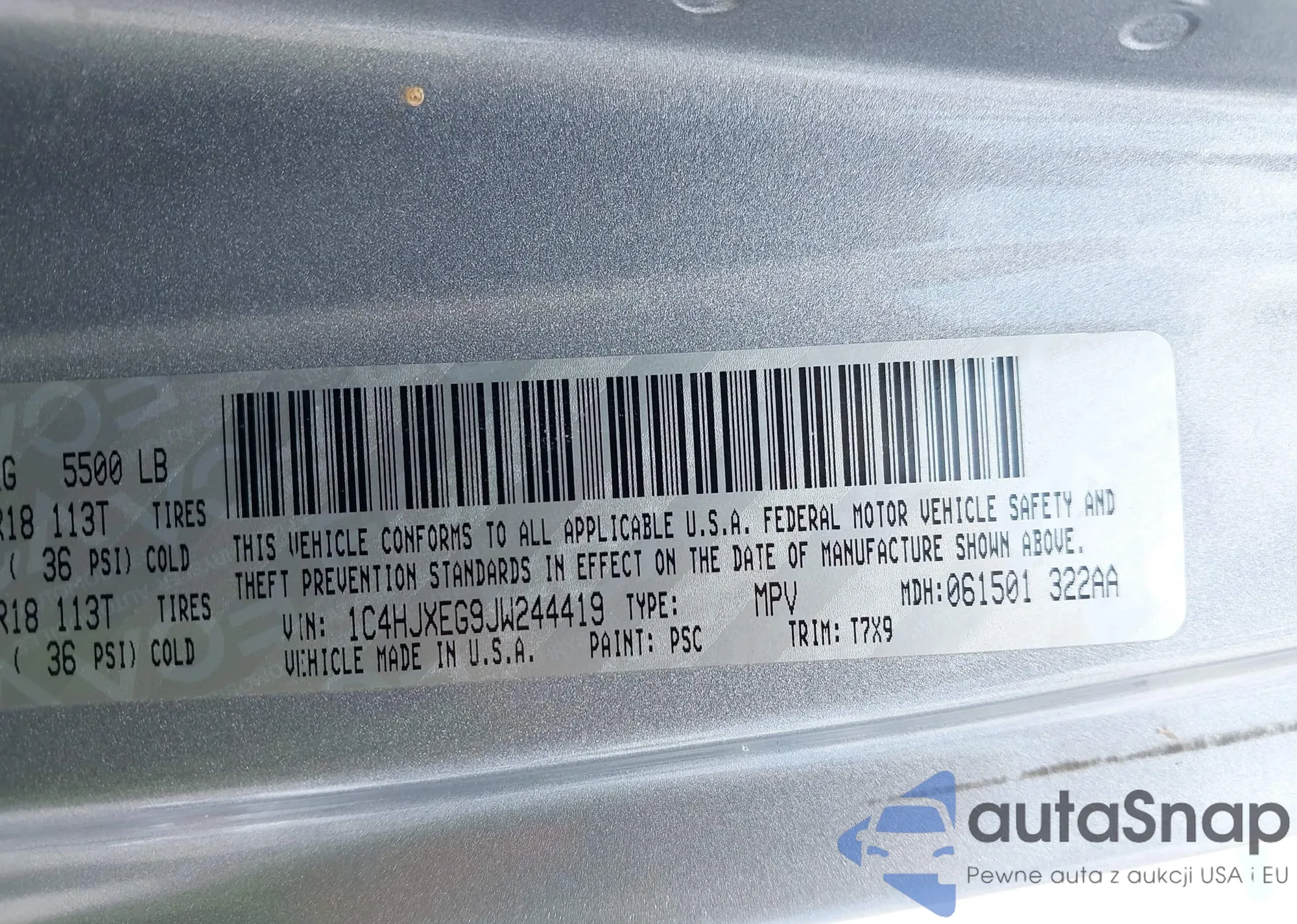LOT: 41994594 VIN: 5UXTY5C00M9F37677