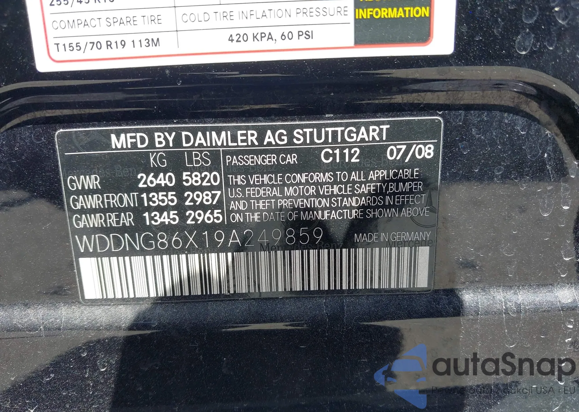 LOT: 42128781 VIN: WDDNG86X19A249859