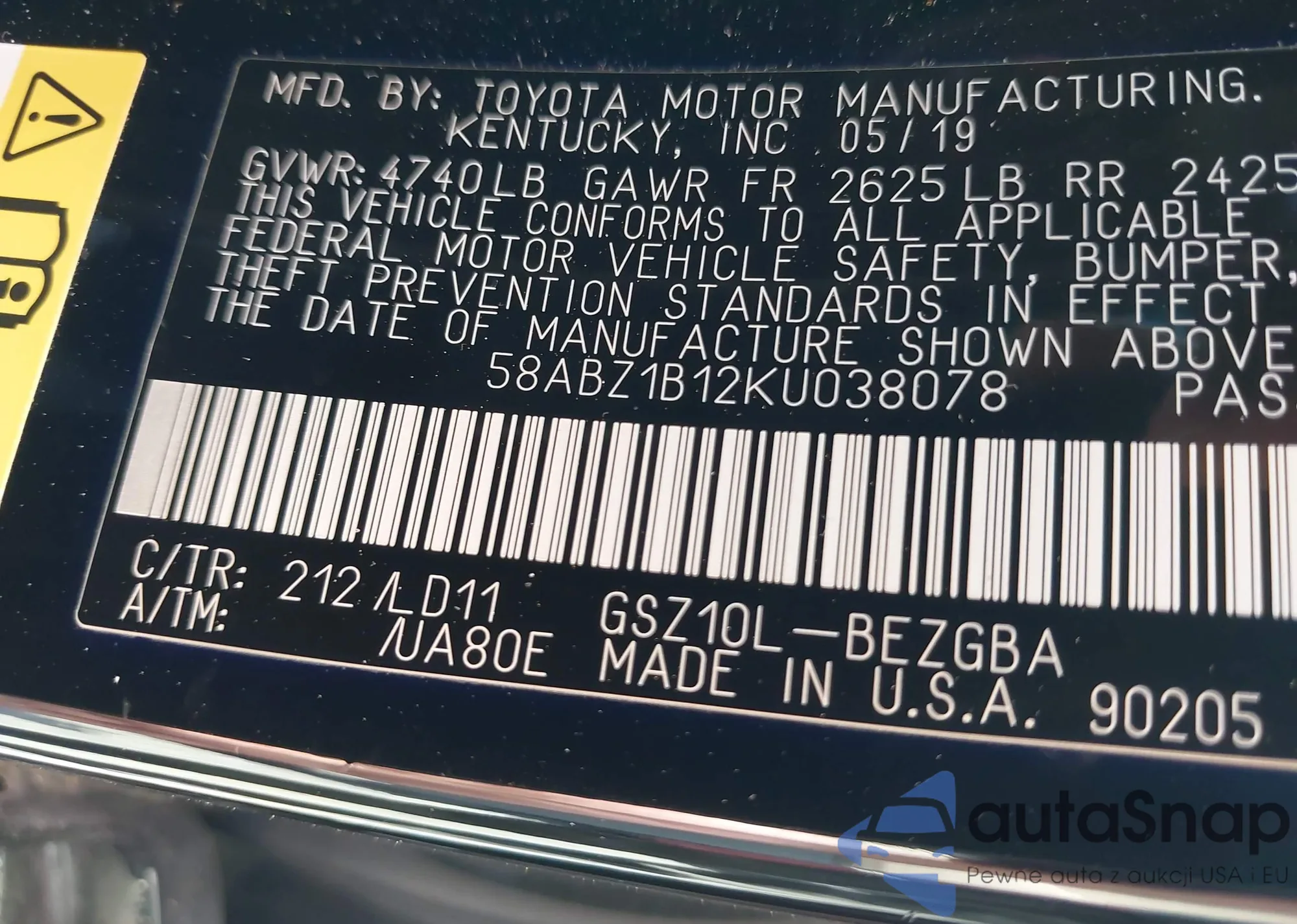 • VIN 58ABZ1B12KU038078
