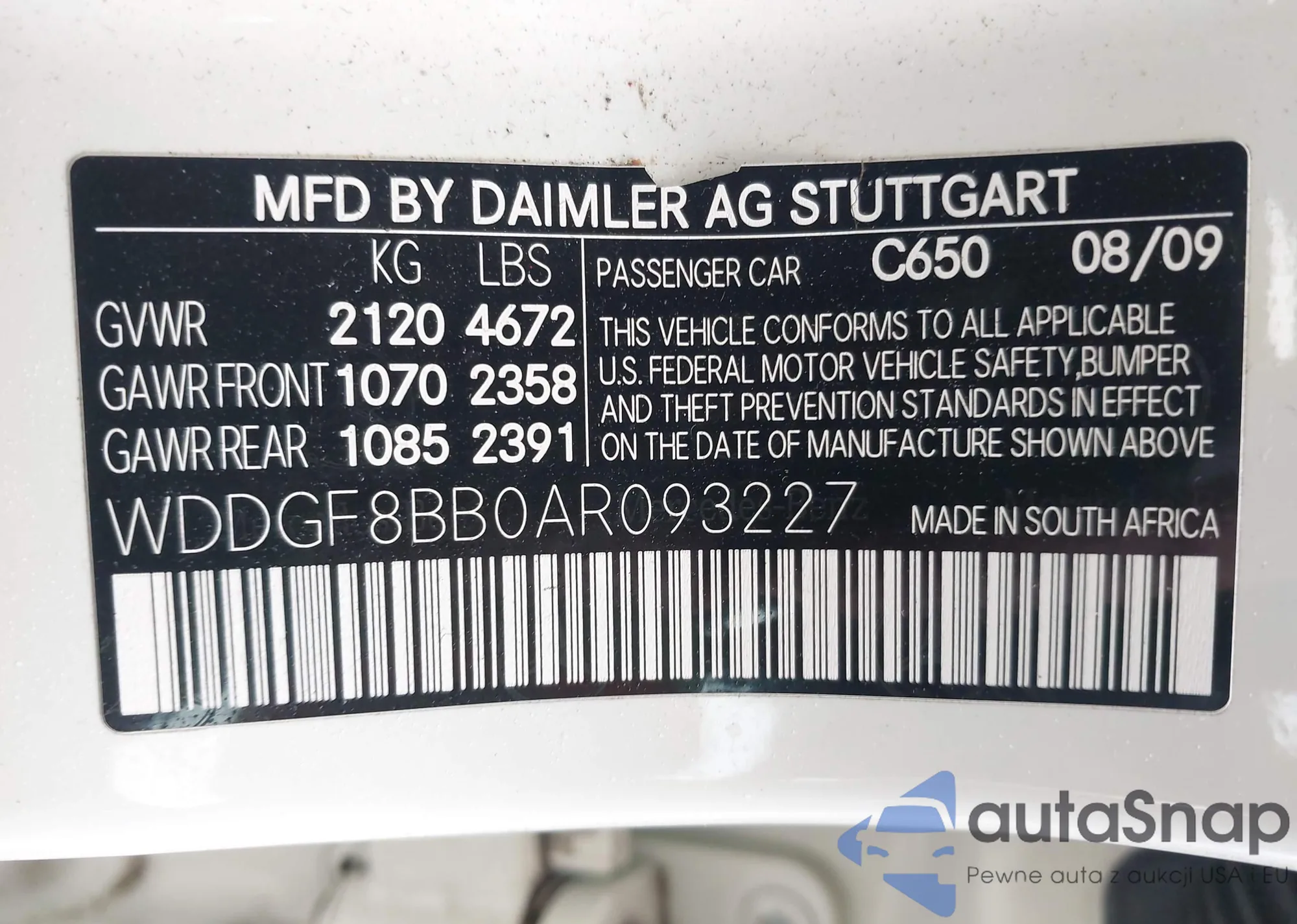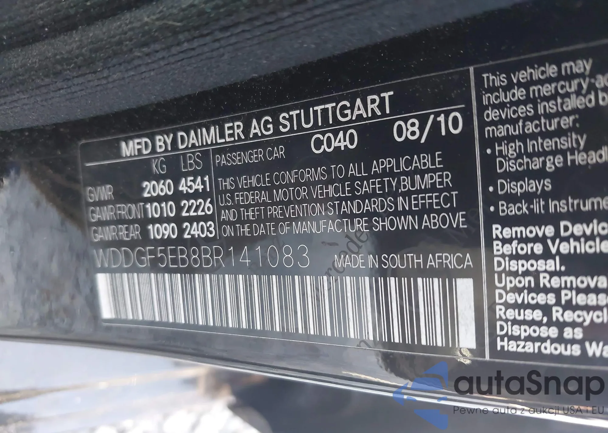 LOT: 42185957 VIN: WDDGF5EB8BR141083