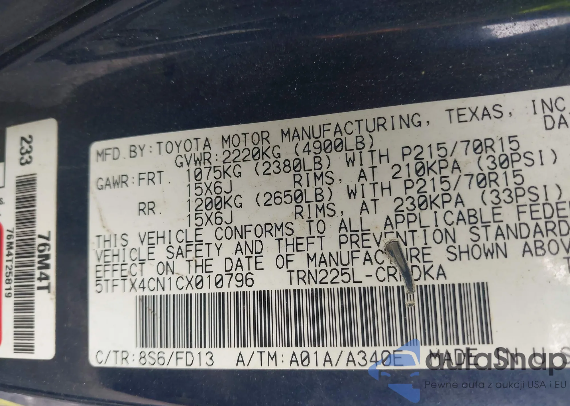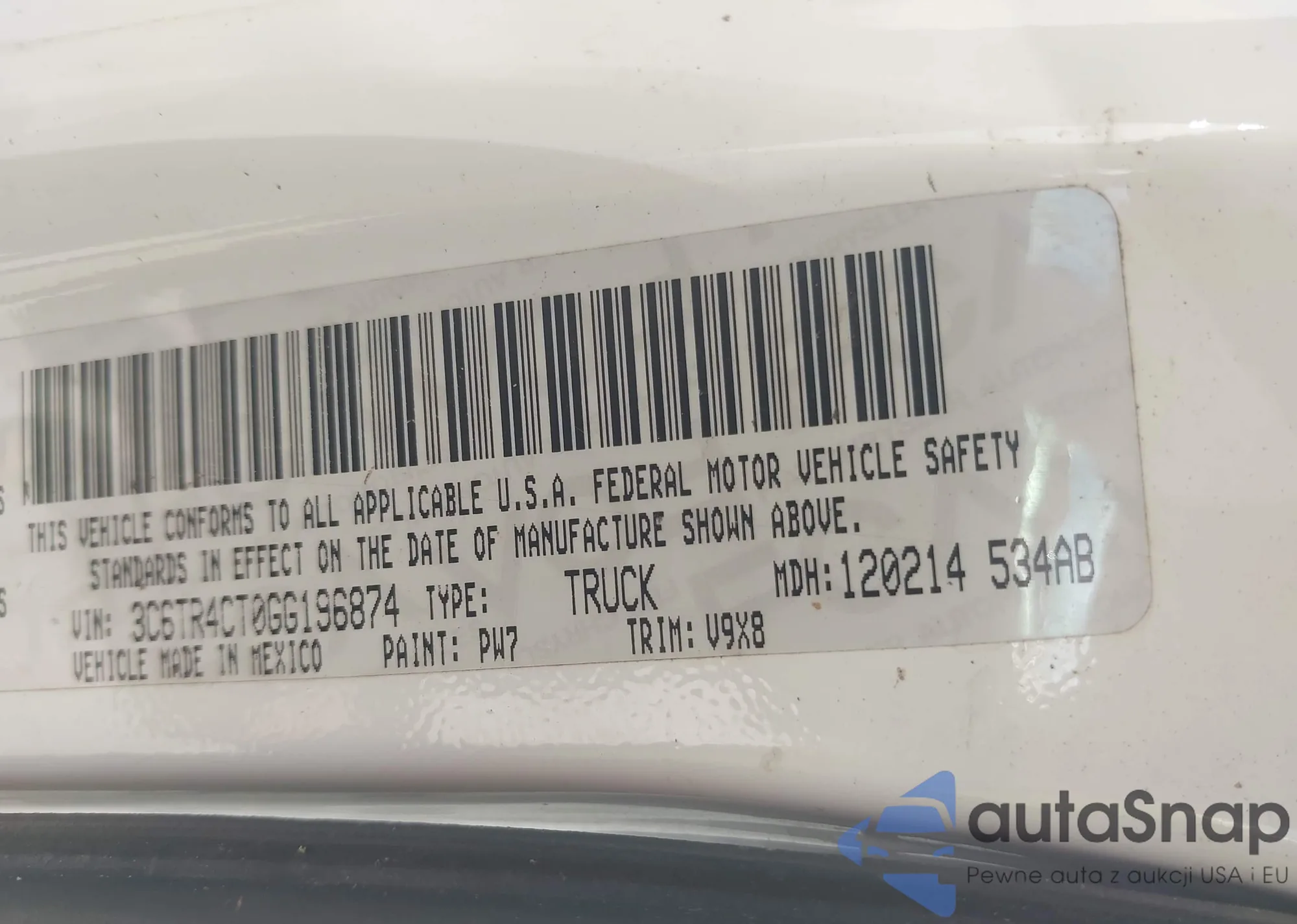 • VIN 3C6TR4CT0GG196874