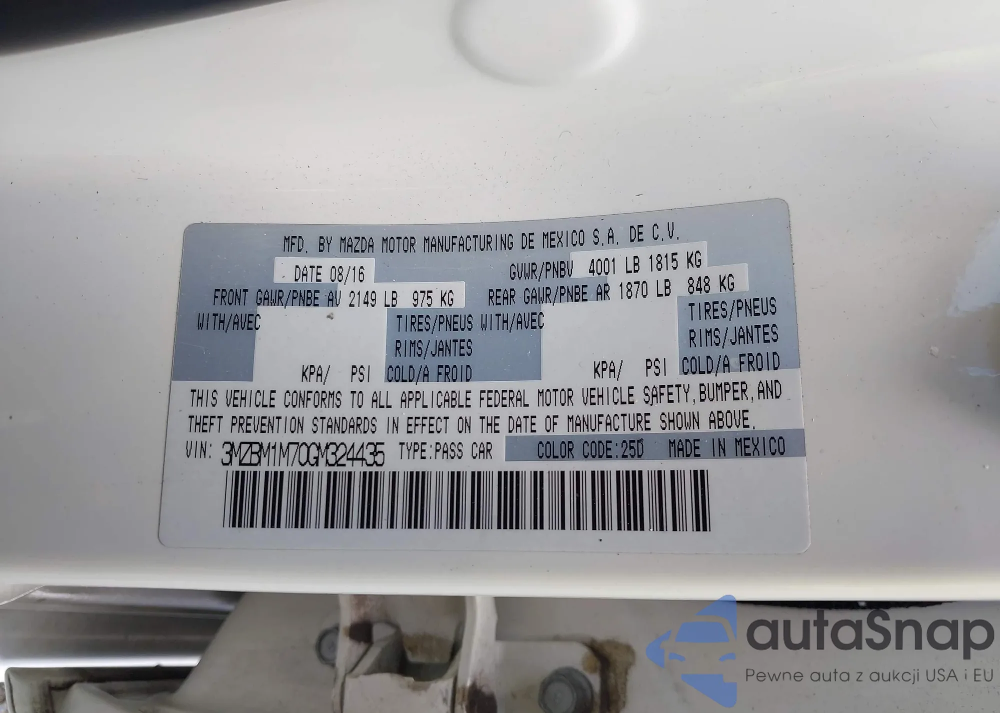 LOT: 42197410 VIN: KNMAT2MV6FP578987