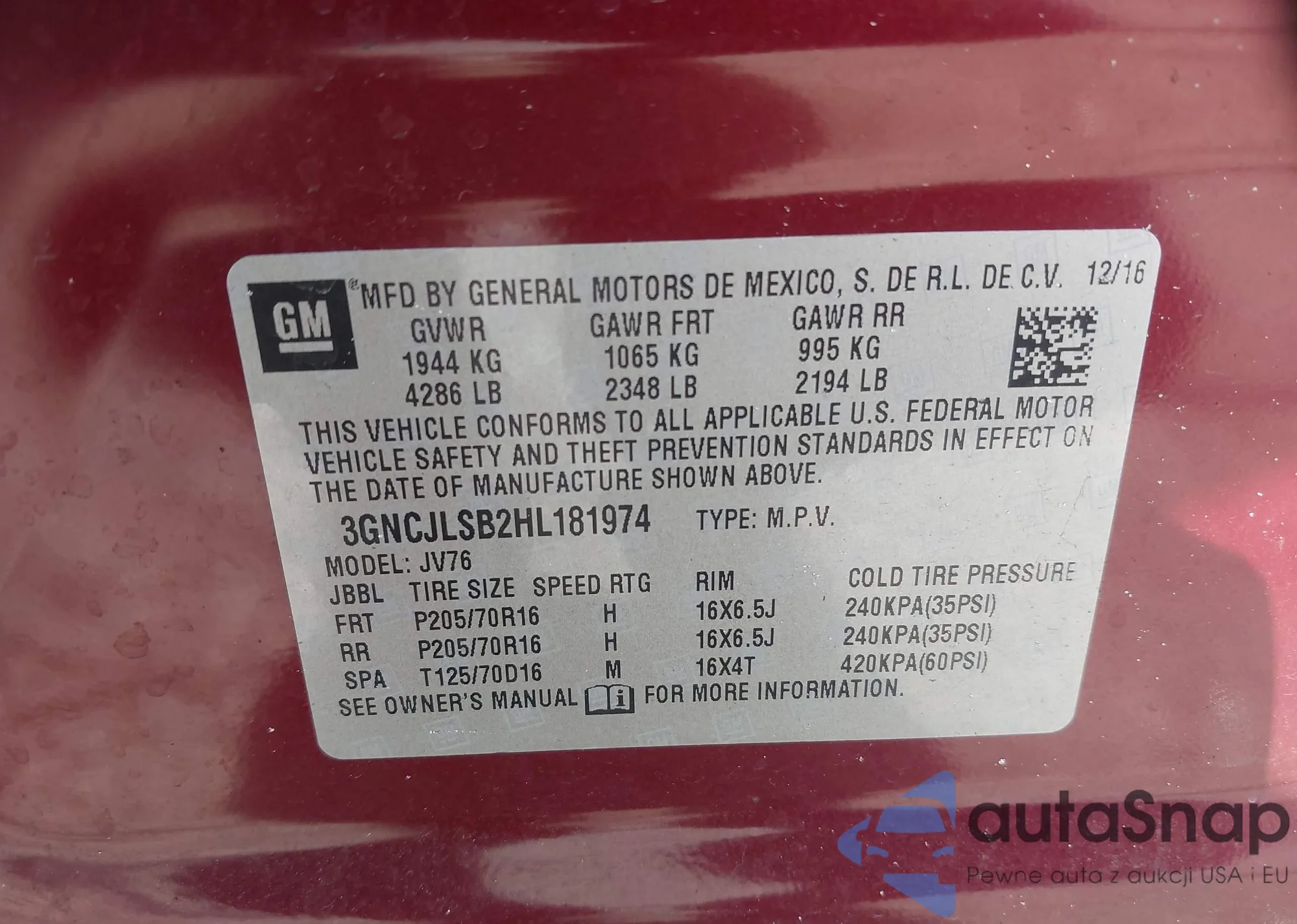 • VIN 3GNCJLSB2HL181974