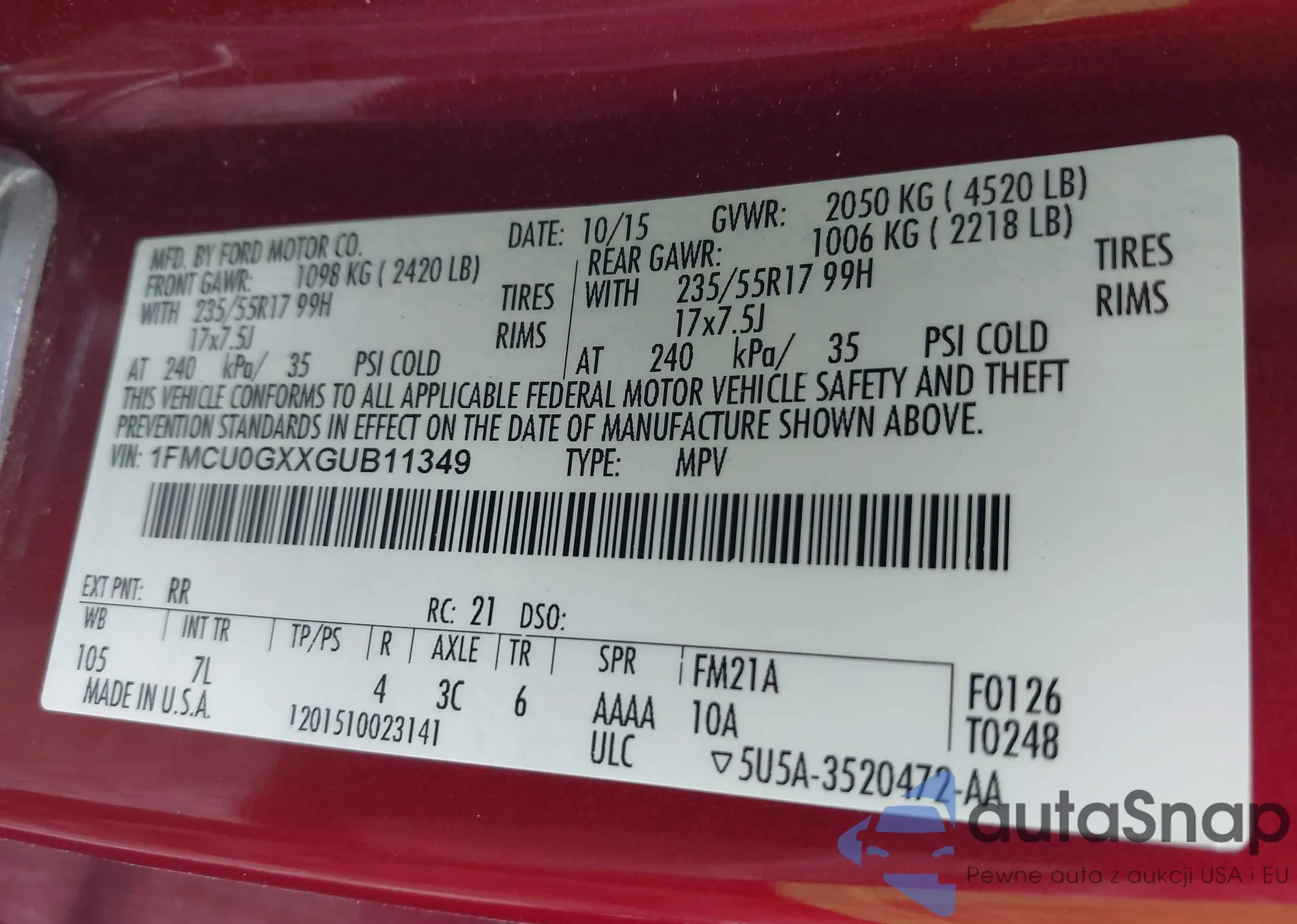 • VIN 1FMCU0G90HUB73023