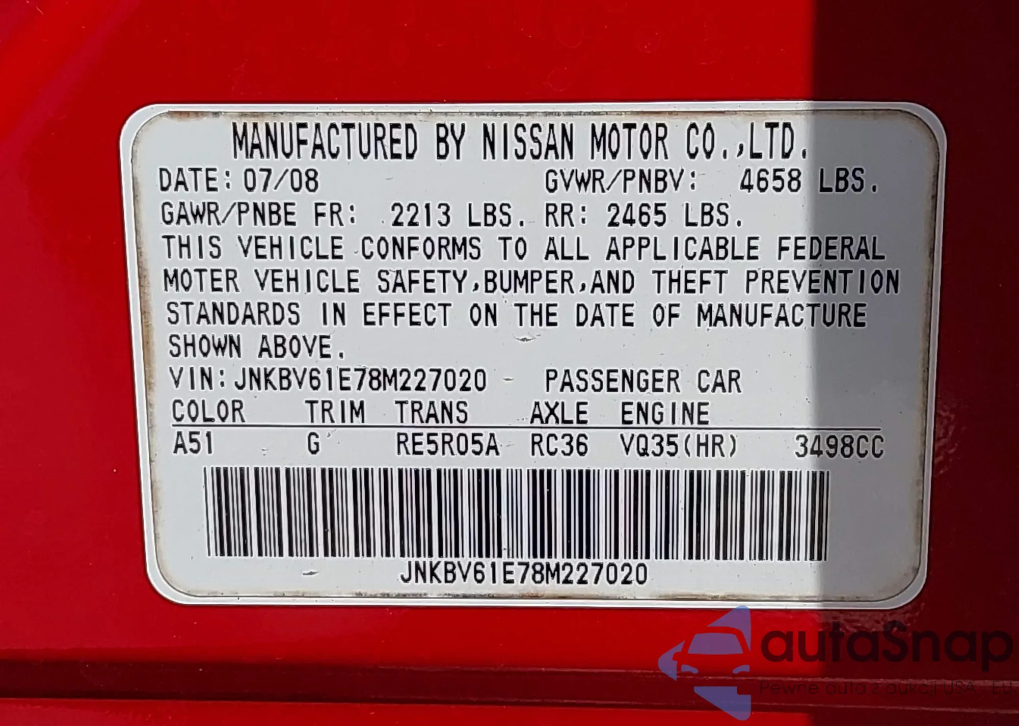 LOT: 42168398 VIN: JN8AT2MT2JW455348