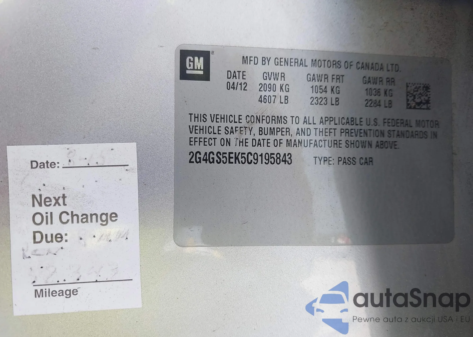 • VIN 2G4GS5EK5C9195843