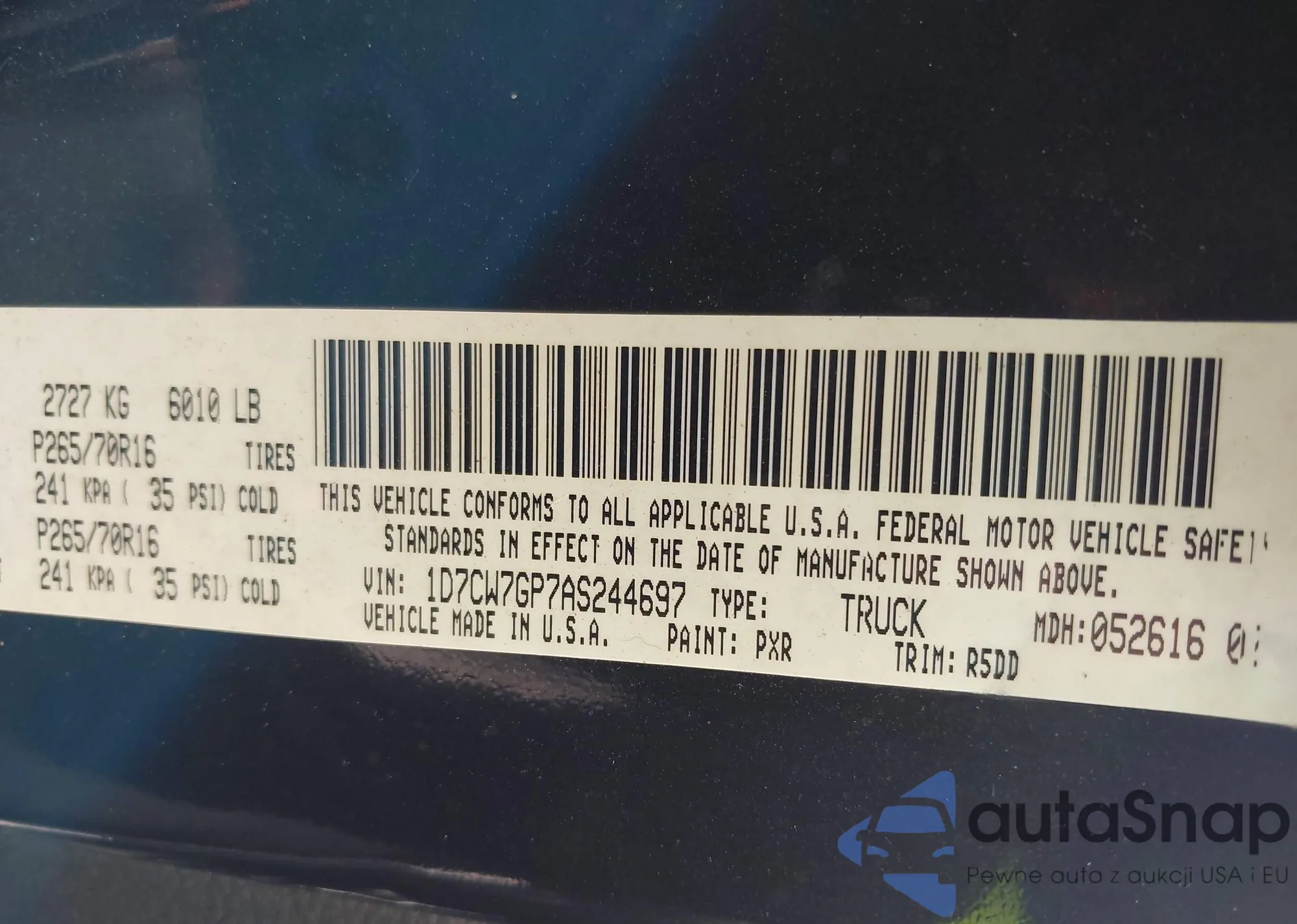 • VIN 1D7CW7GP7AS244697