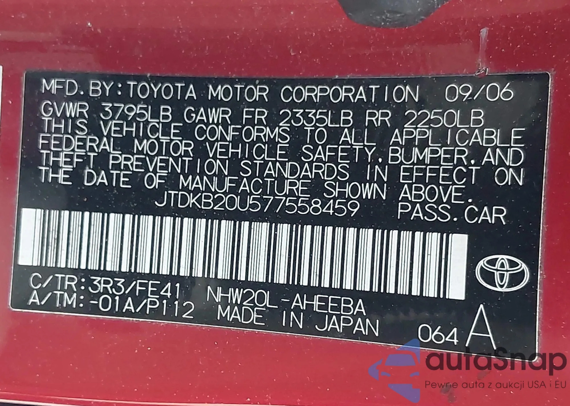 LOT: 41700487 VIN: JM1CR29L980317119