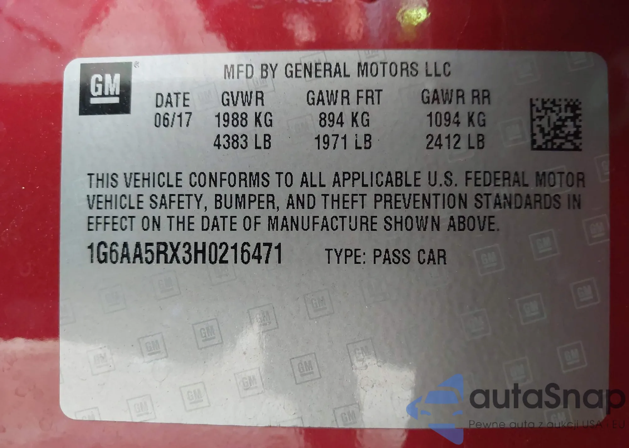 LOT: 42047067 VIN: 1G1PA5SH0F7174655