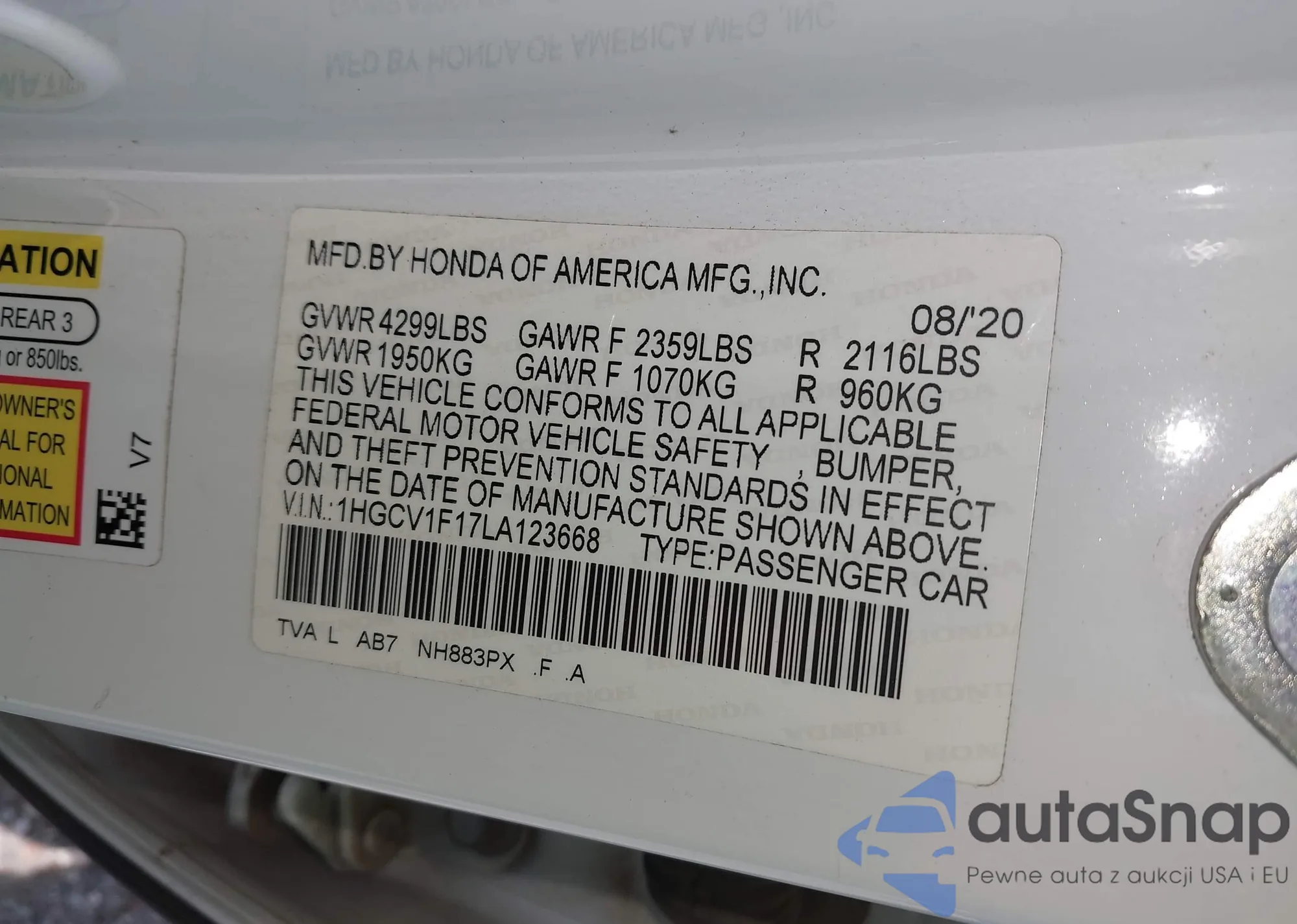 • VIN 1HGCV1F17LA123668