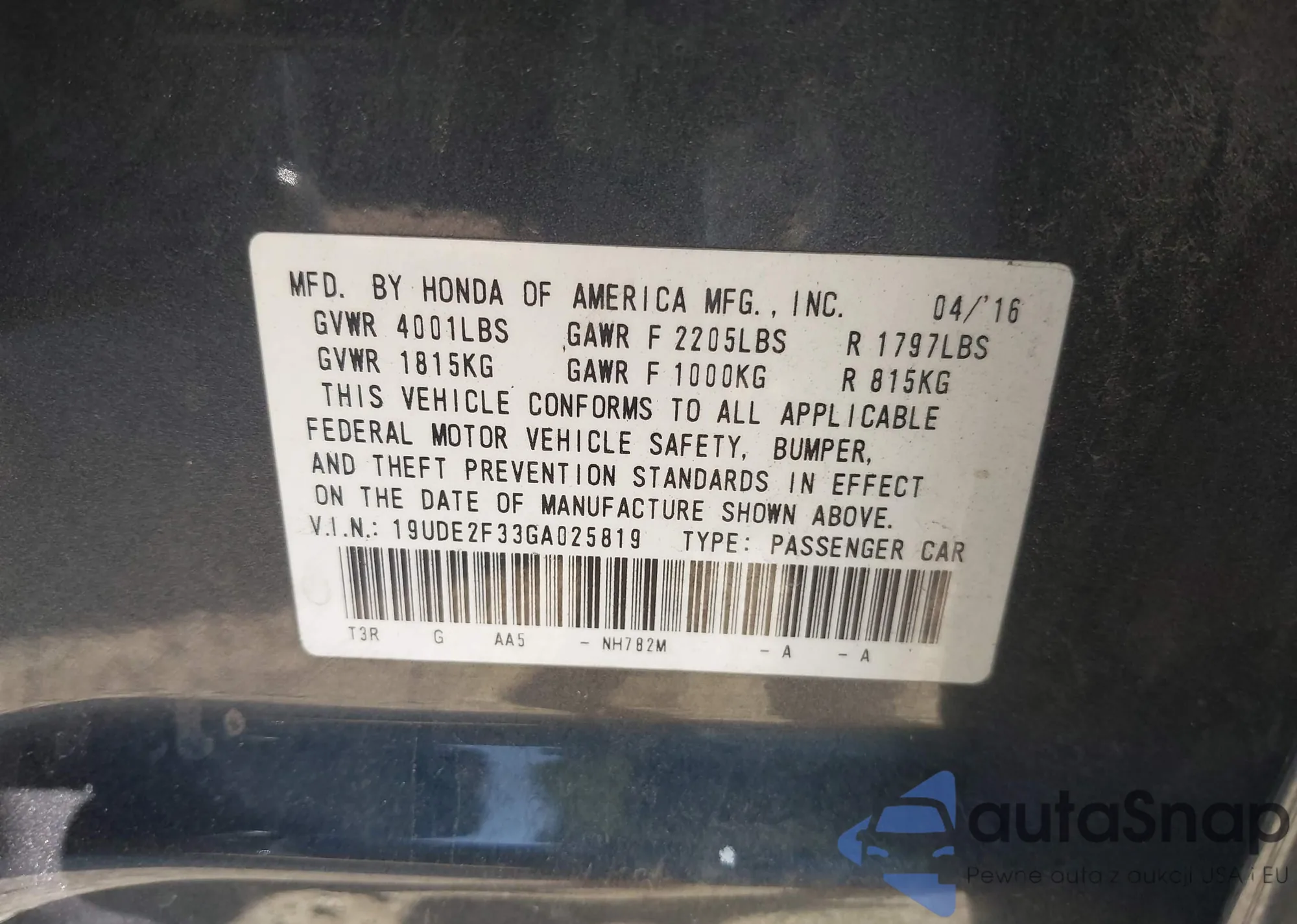 LOT: 42011438 VIN: JA32U2FU7HU002480