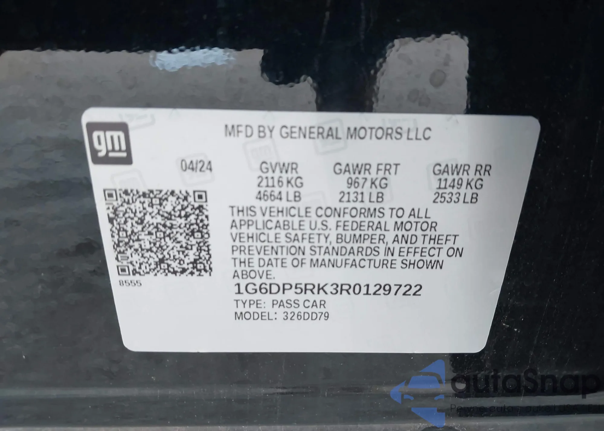• VIN 1G6DP5RK3R0129722