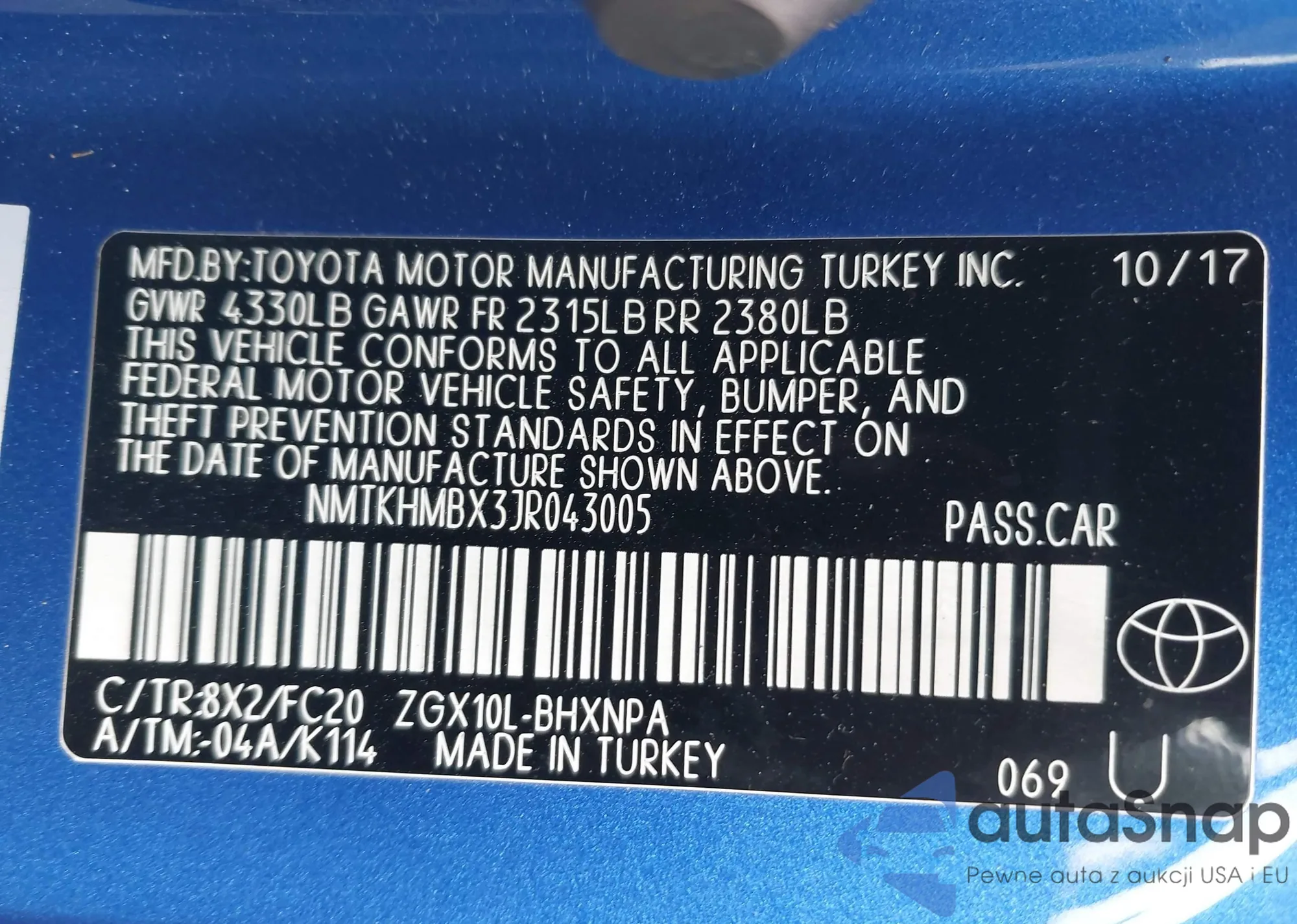 • VIN NMTKHMBX3JR043005