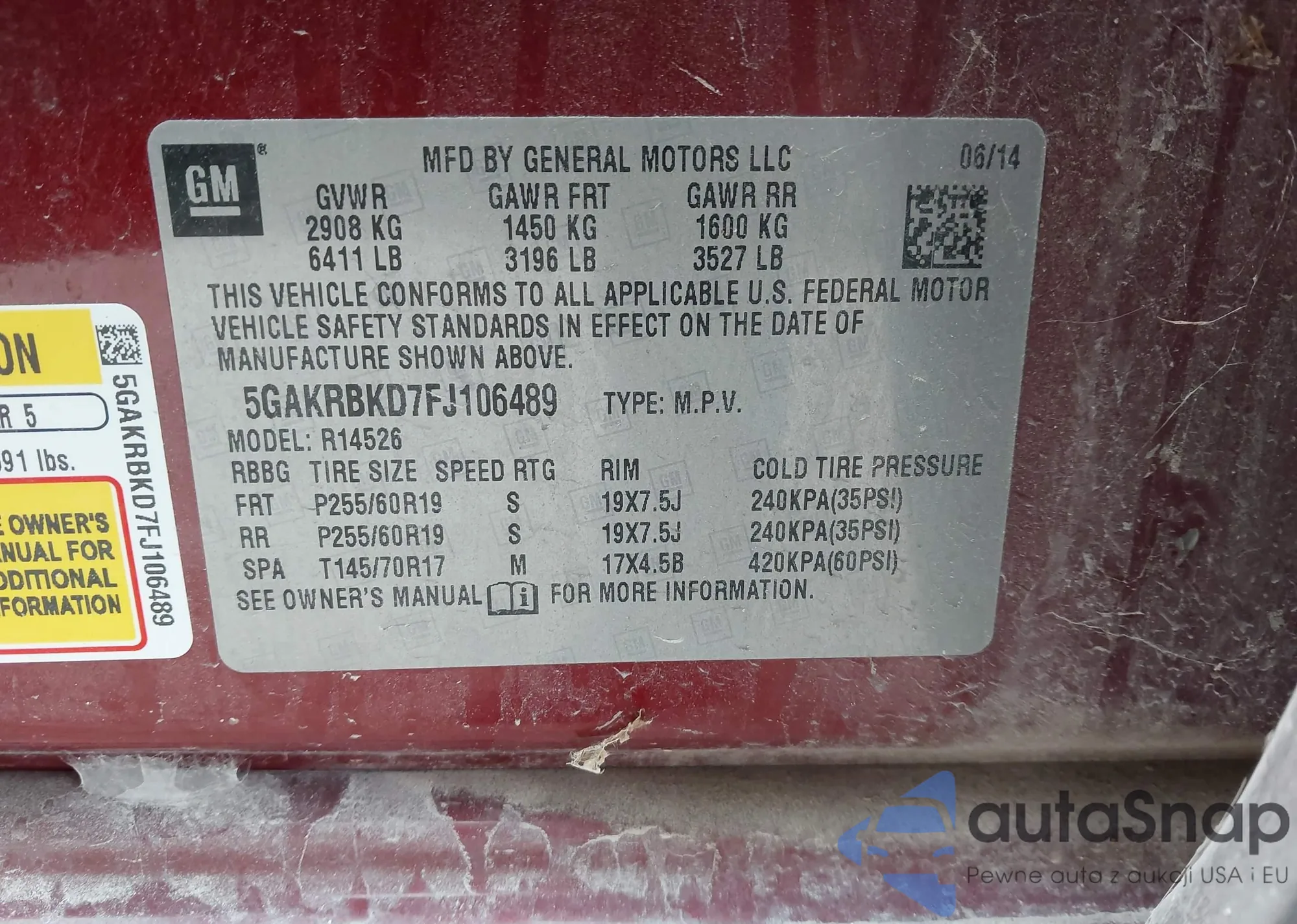 • VIN 5GAKRBKD7FJ106489
