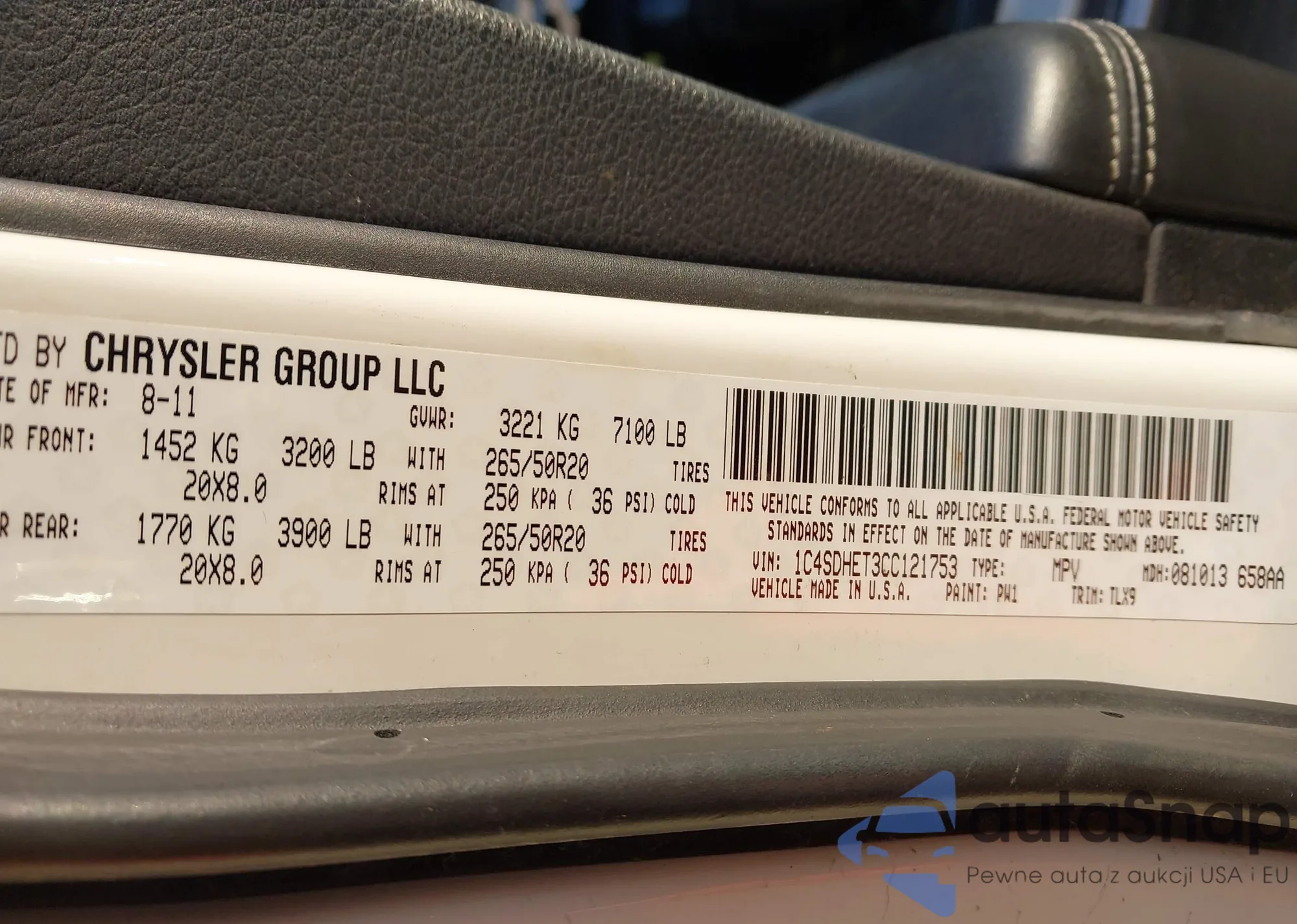 • VIN 1C4HJXDG3KW528647