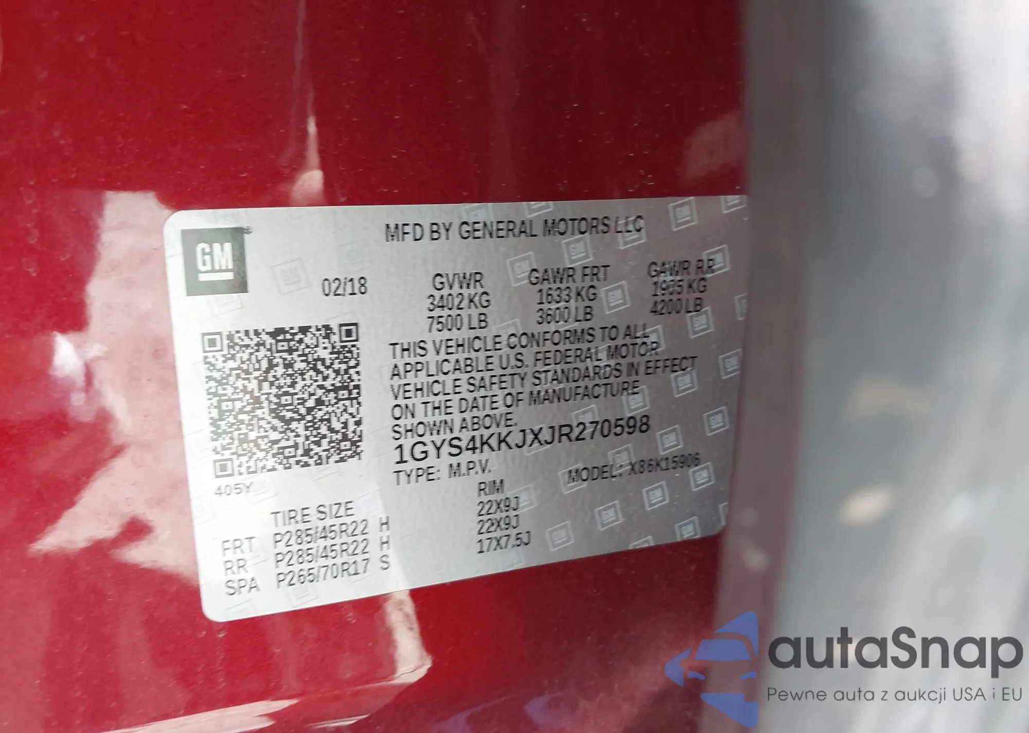 LOT: 42238452 VIN: 1GYS4KKJXJR270598