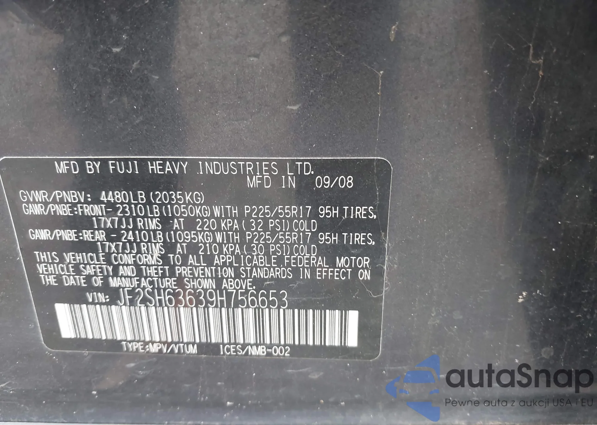 LOT: 42401558 VIN: 4T1BB46K19U100919
