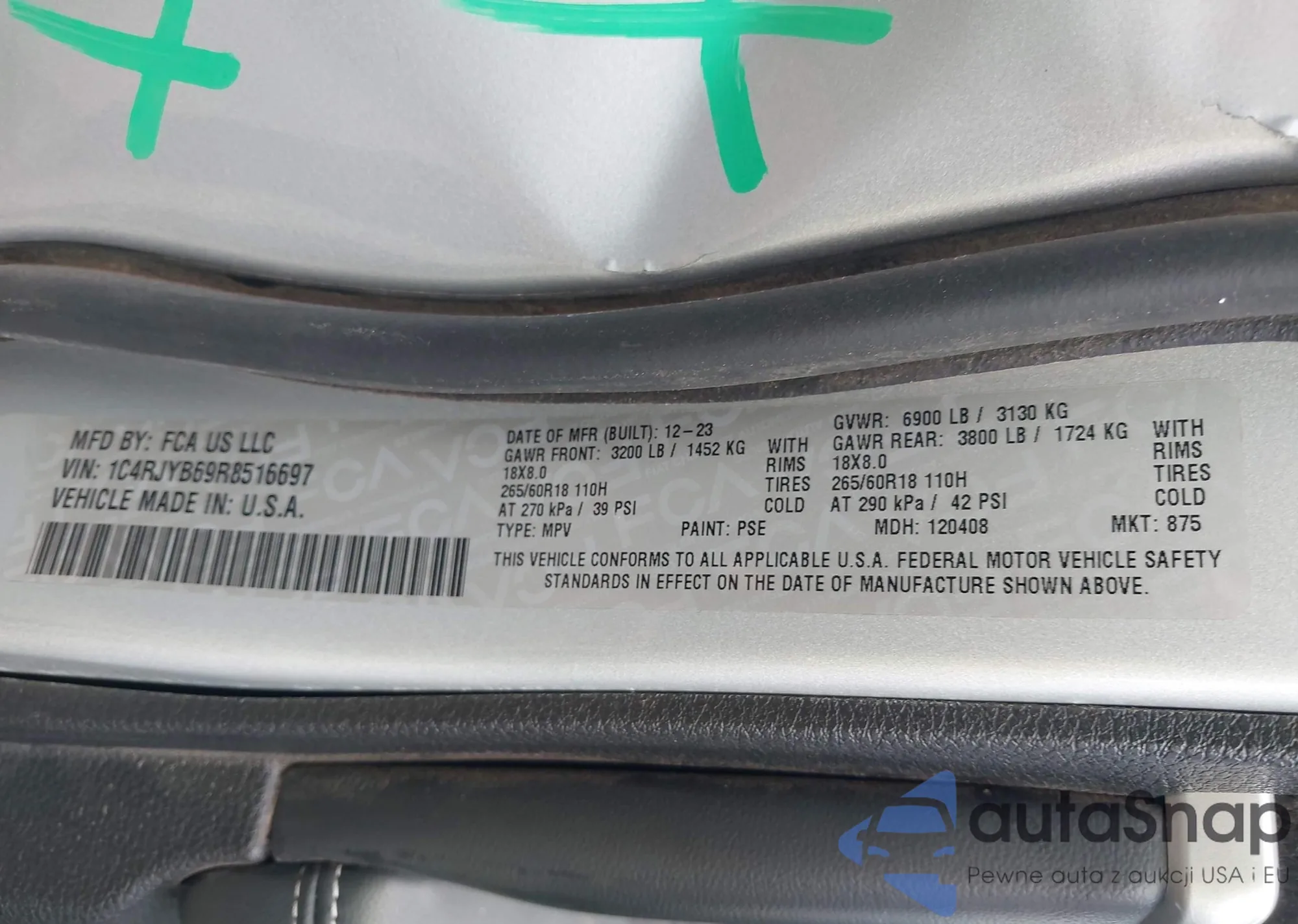 • VIN 1C4RJYB69R8516697