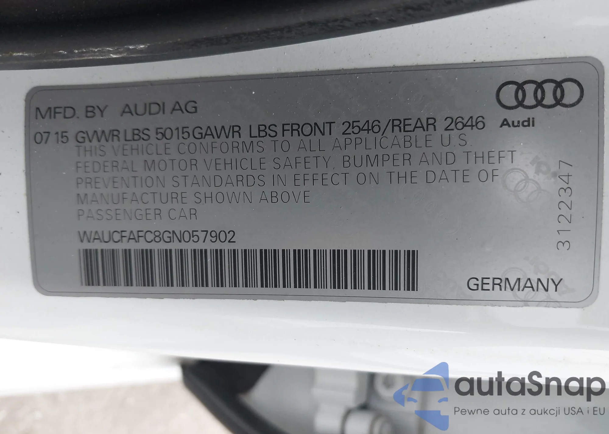 • VIN WAUCFAFC8GN057902