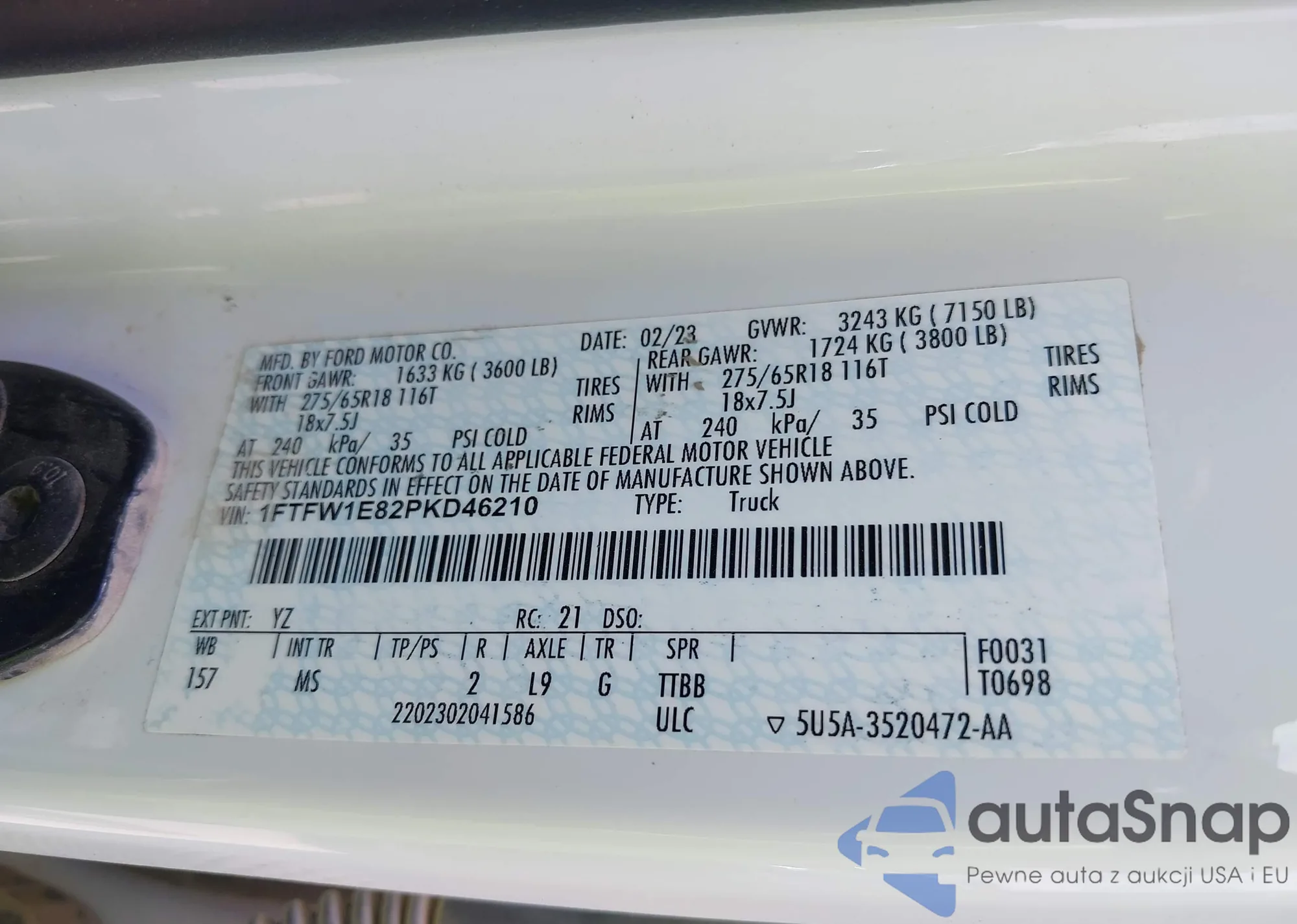 LOT: 41834775 VIN: WA1LXAF76LD005911