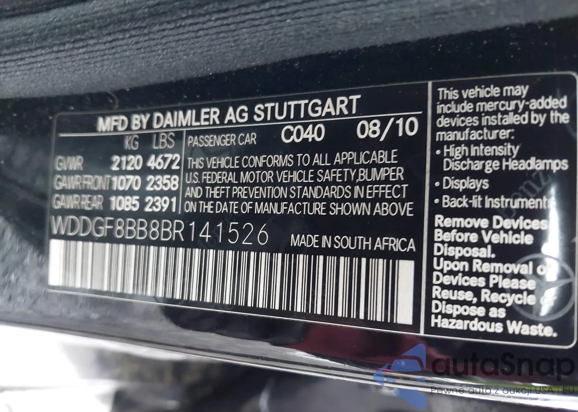 LOT: 42340242 VIN: WDDGF8BB8BR141526