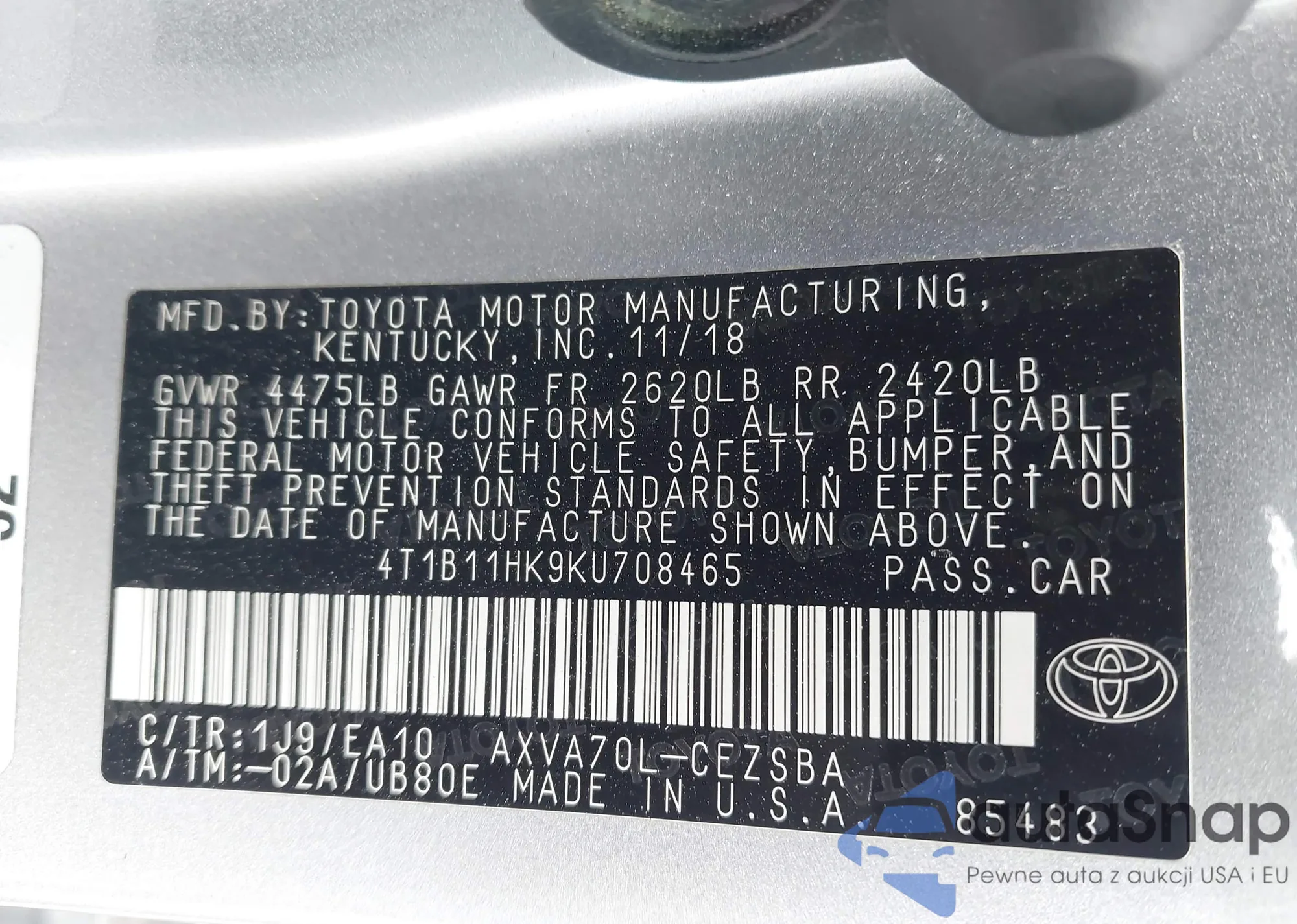 • VIN 4T1BF1FK0EU836859