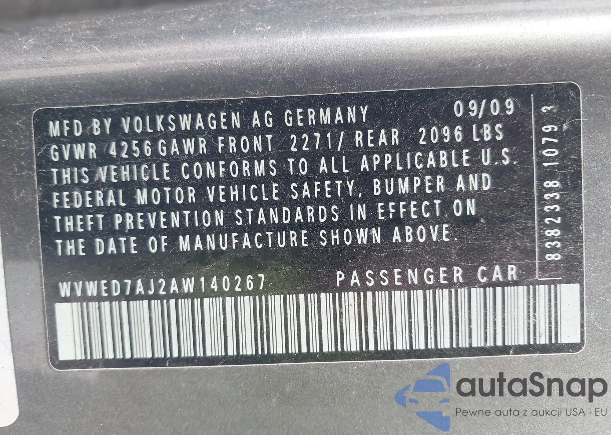 LOT: 41923595 VIN: WVWED7AJ2AW140267