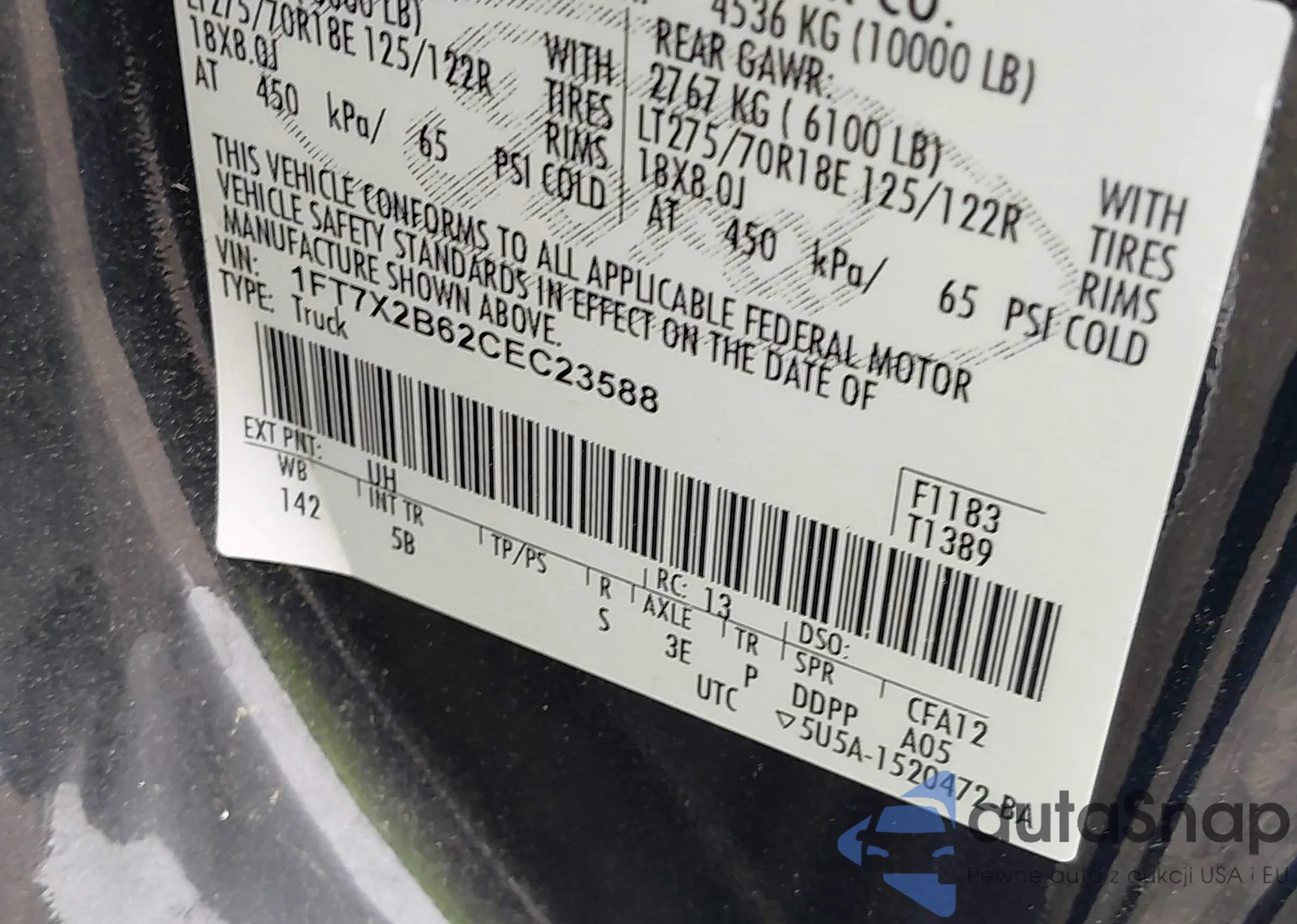 • VIN 1FT7X2B62CEC23588