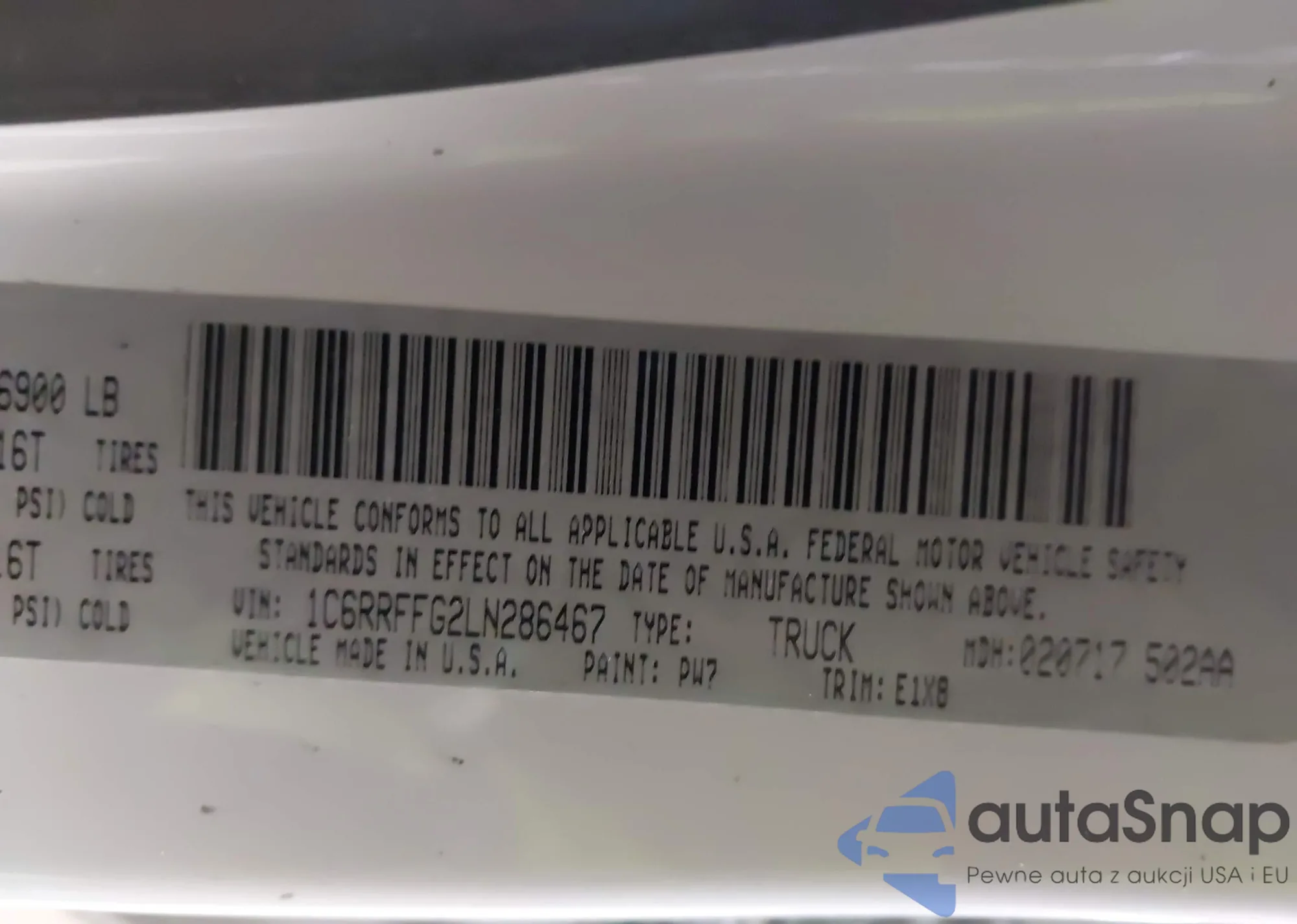 • VIN 1C6RRFFG2LN286467