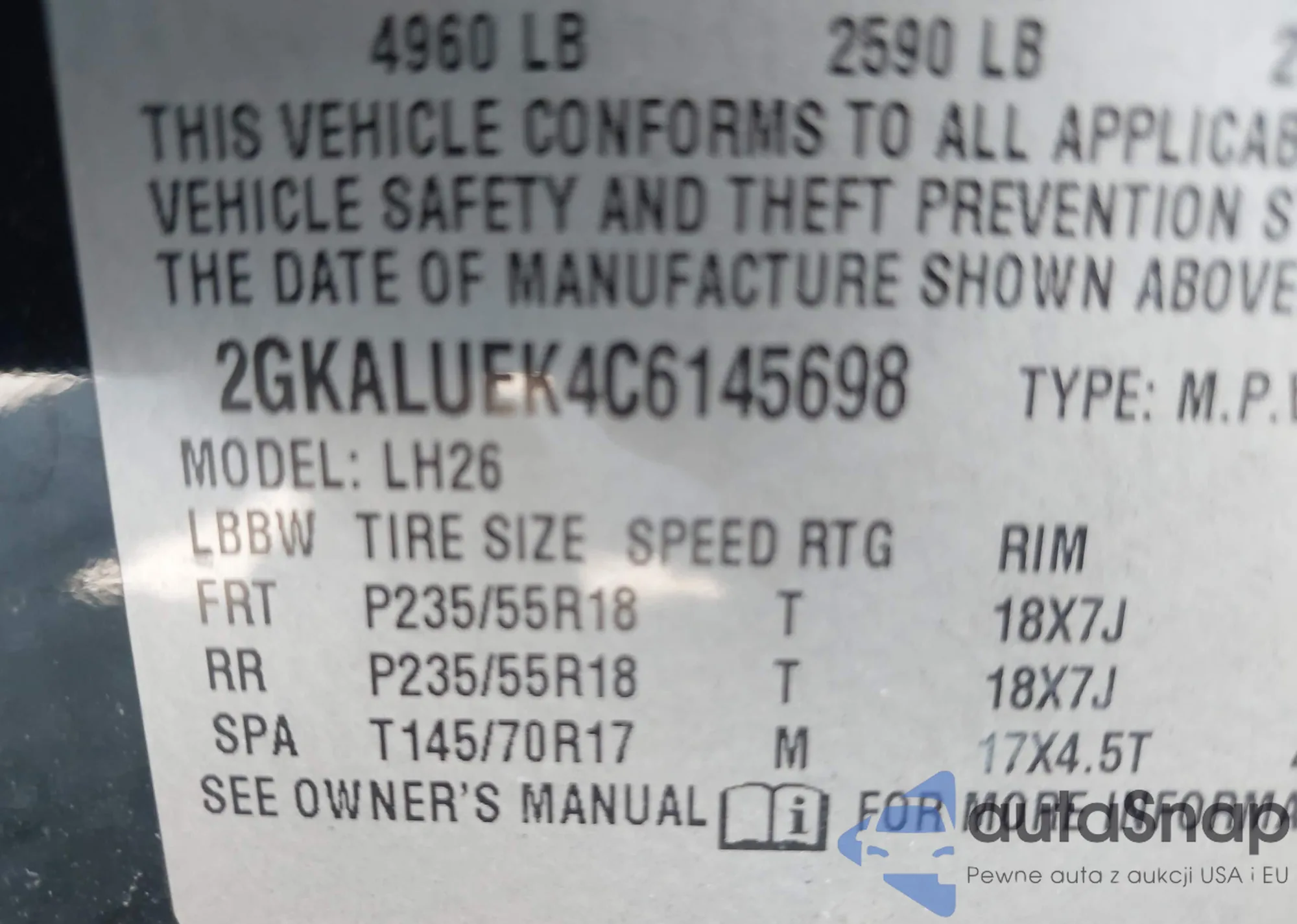 LOT: 42443909 VIN: 5NMJECDE2RH360820
