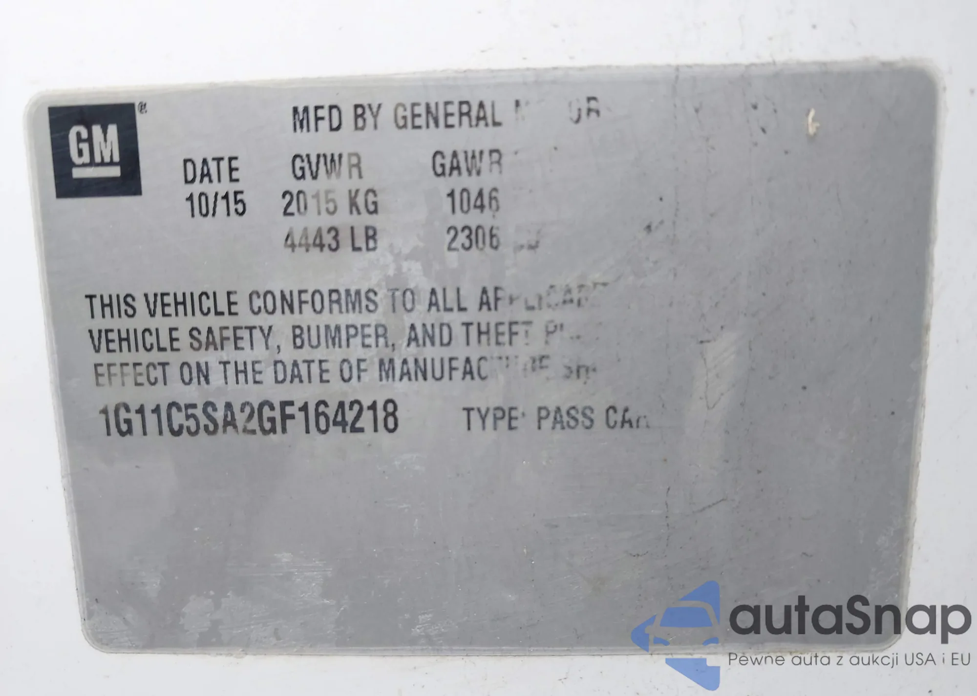 LOT: 41600522 VIN: 1G11C5SA2GF164218