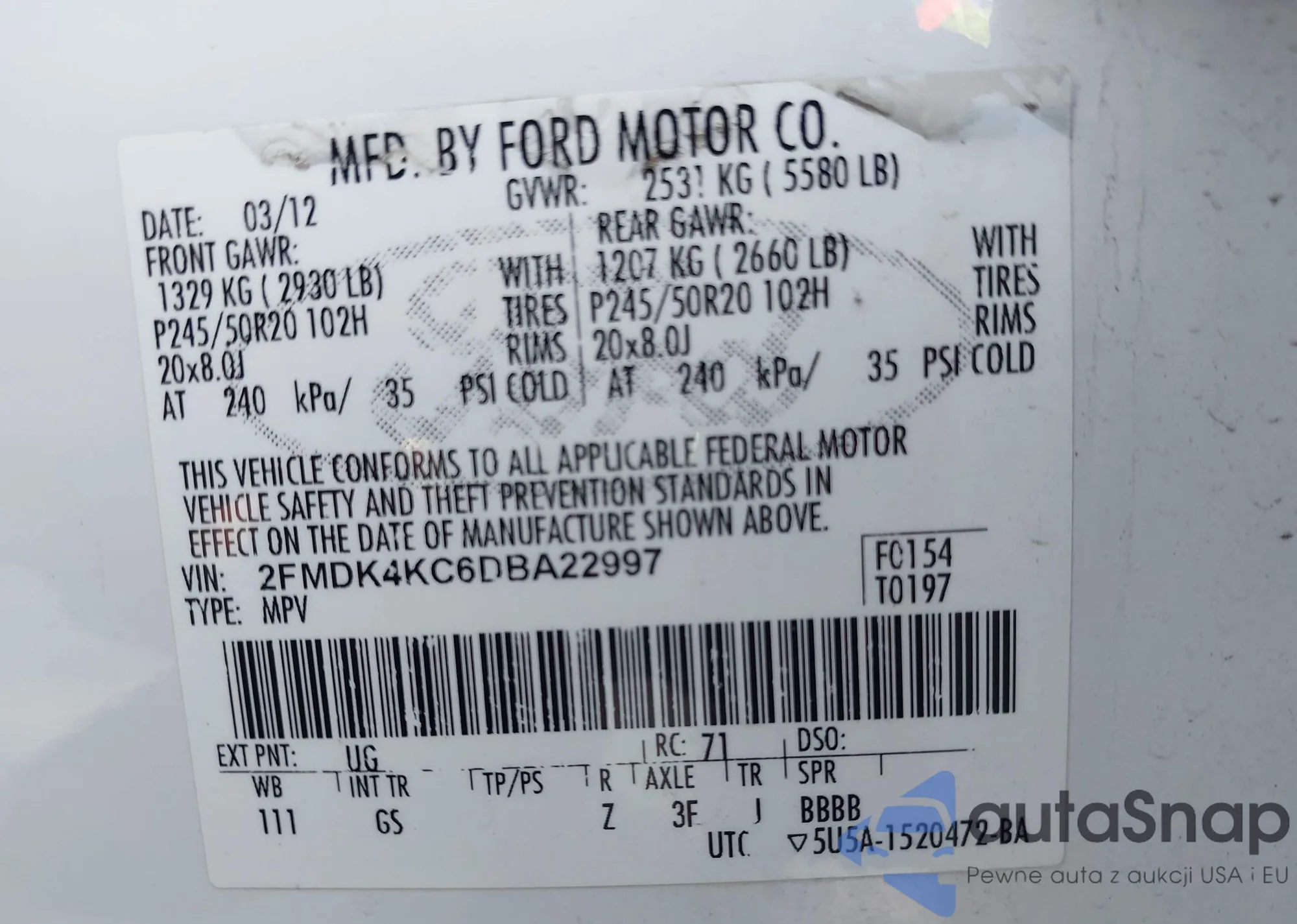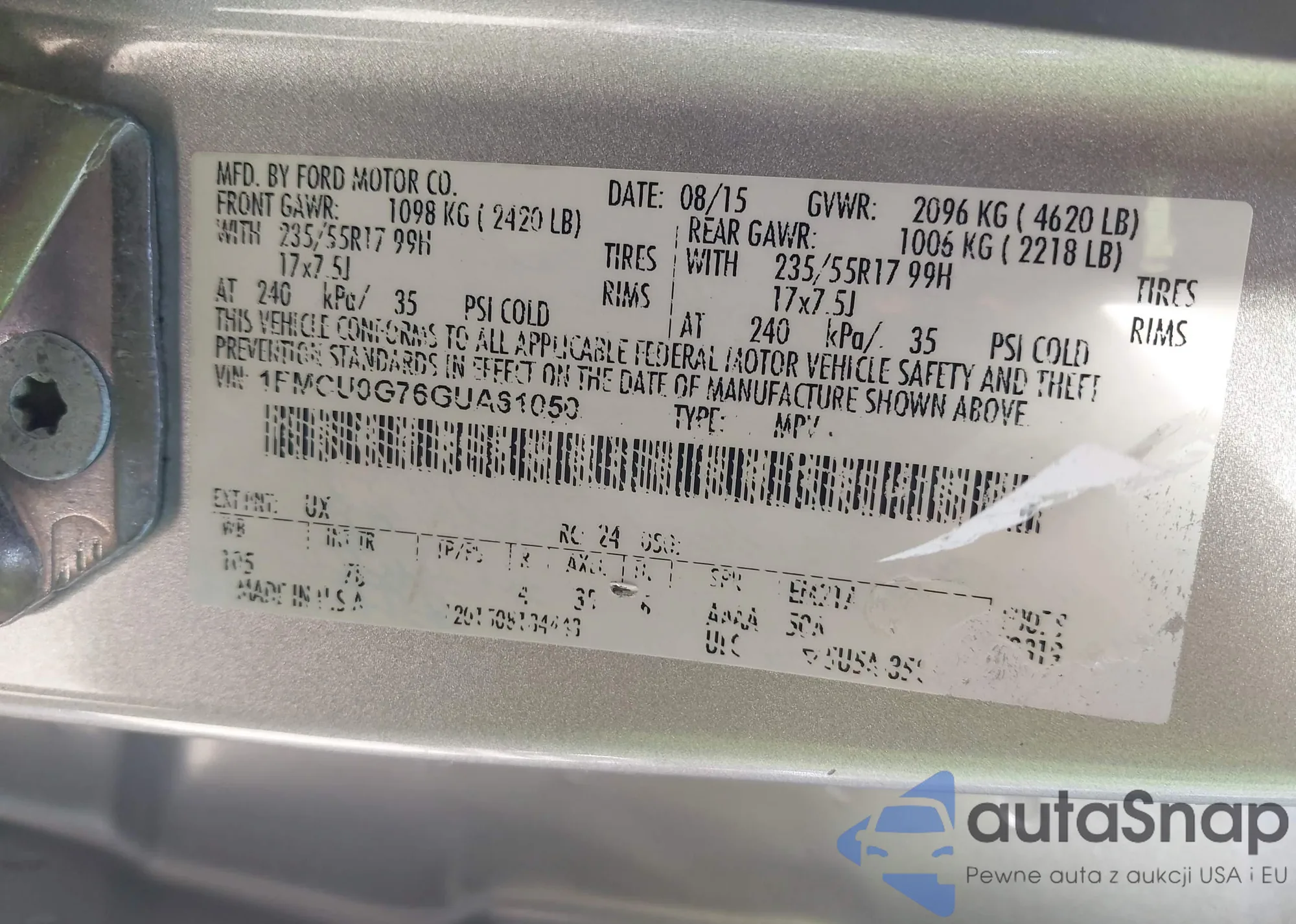 LOT: 42171320 VIN: 1FMCU0G76GUA61050