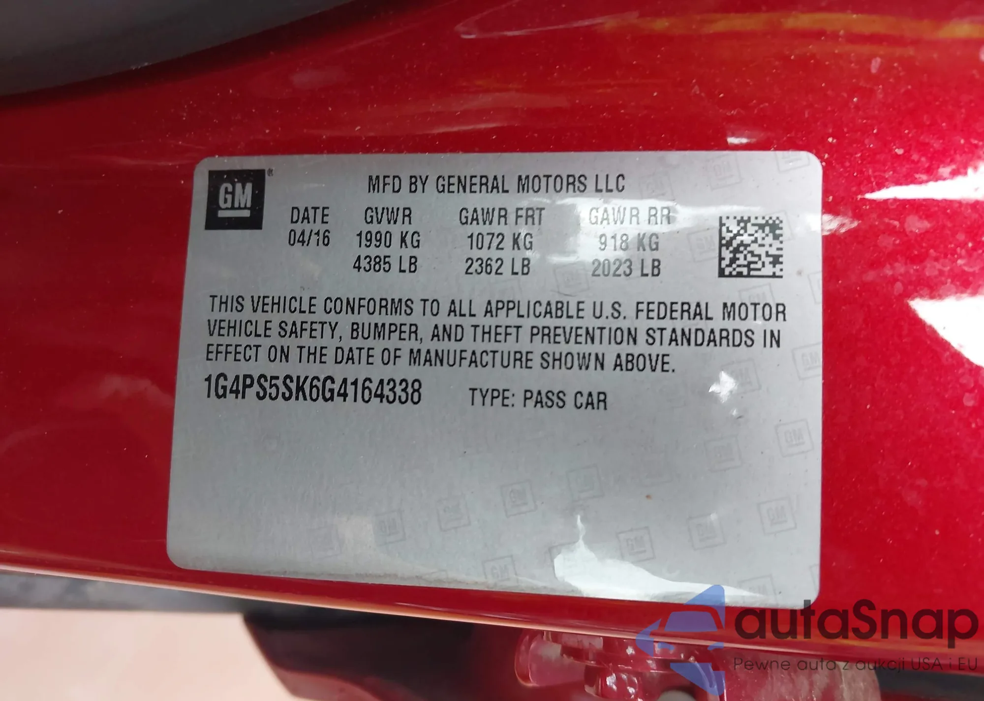 • VIN 1G4PS5SK6G4164338