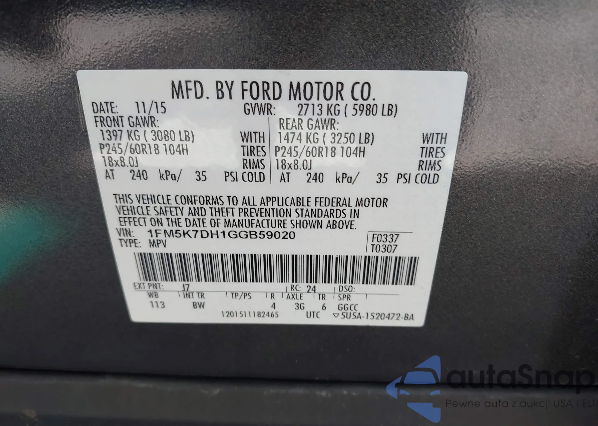 • VIN 1FM5K7DH1GGB59020