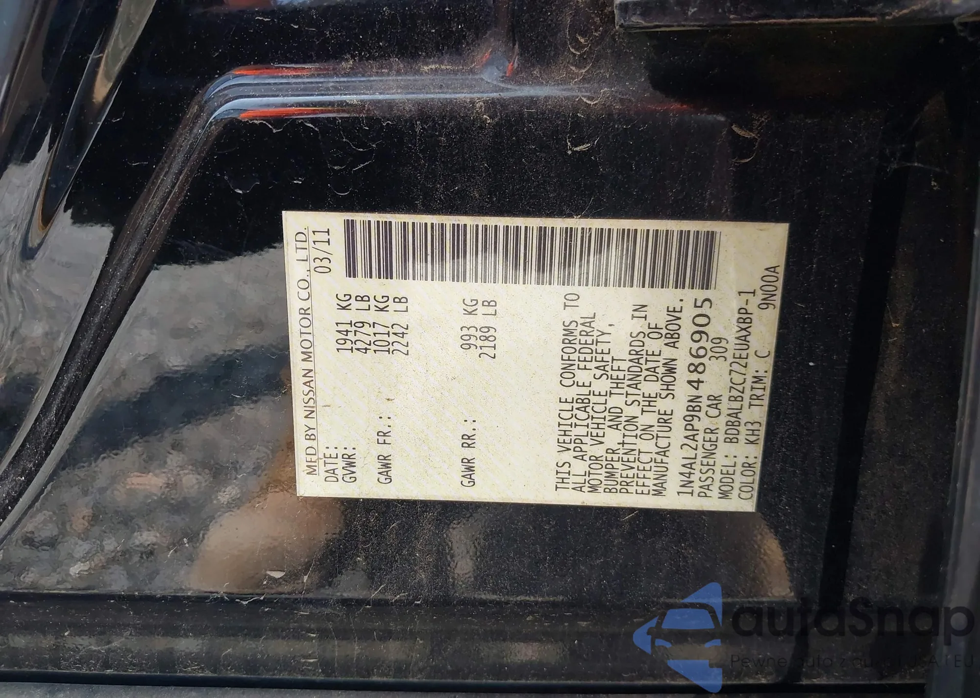 • VIN 1N4AL2AP9BN486905